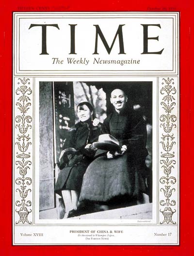 ''라이프''지는 쑹메이링을 "세계에서 가장 강력한 여성"이라고 불렀고,[48] ''리버티''지는 그녀를 "중국 정부의 실질적인 두뇌이자 지도자"라고 묘사했다.[49] ''타임''지 발행인 헨리 루스(Henry Luce)의 부인 클레어 부스 루스(Clare Boothe Luce)는 그녀를 잔 다르크(Joan of Arc)와 플로렌스 나이팅게일(Florence Nightingale)에 비유했고,[50] 작가 어니스트 헤밍웨이(Ernest Hemingway)는 그녀를 중국의 "황후"라고 불렀다.[50]