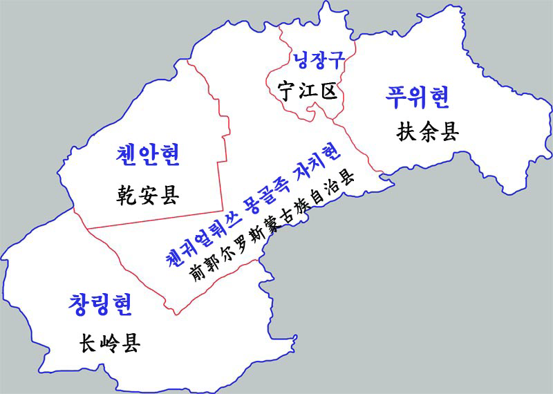 5첸궈얼뤄쓰 몽골족 자치현前郭尔罗斯蒙古族自治县zh-hansQiánguō'ěrluósī Měnggǔzú Zìzhìxiàn580,0005,117113