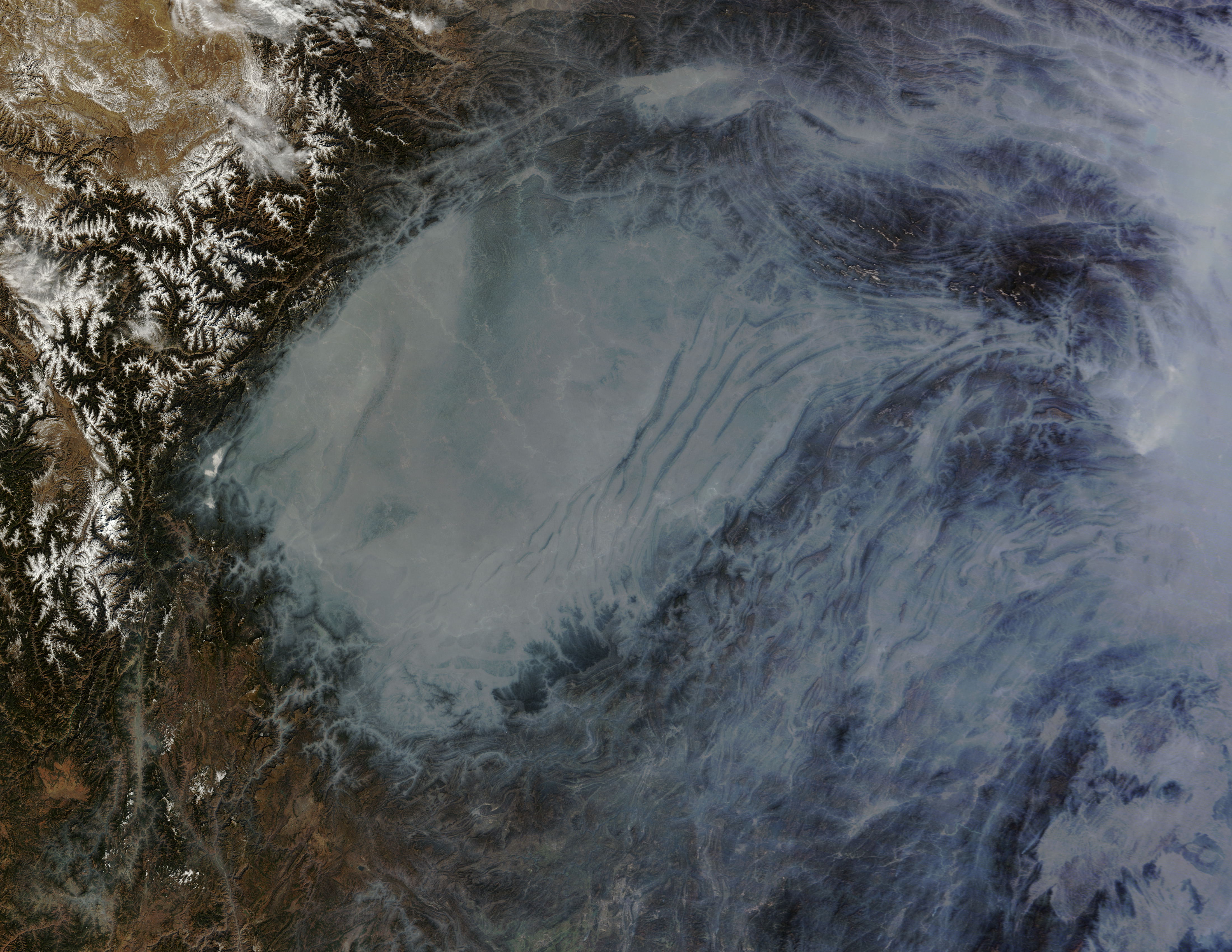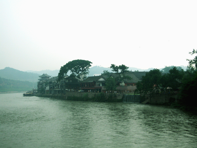 설명 | 중앙의 평탄한 부분이 쓰촨 분지이며, 분지의 동부에는 구릉의 연쇄가 여러 개 보인다. 북동쪽의 녹색 산지는 대파산맥과 미창산맥, 북서쪽에는 눈 덮인 산맥과 초원이 티베트로 이어진다. 북쪽에는 식생이 적은 산시성과 간쑤성의 황토 지대가 펼쳐져 있다. |