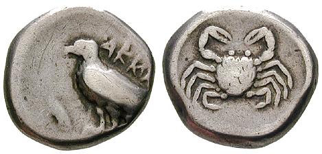 아크라가스는 시칠리아 해협에서 티레니아 해로 가는 주요 육상로를 통제했는데, 이는 기원전 6세기와 5세기에 아크라가스의 경제적 번영의 핵심 요소였다. 플라톤은 주민들의 생활 수준을 보고 "그들은 영원히 살 것처럼 집을 짓지만, 마지막 날인 것처럼 먹는다"라고 말했다고 전해진다.[9] 아크라가스는 기원전 520년경에 자체 주화를 주조하기 시작한 시칠리아 최초의 공동체 중 하나였다.