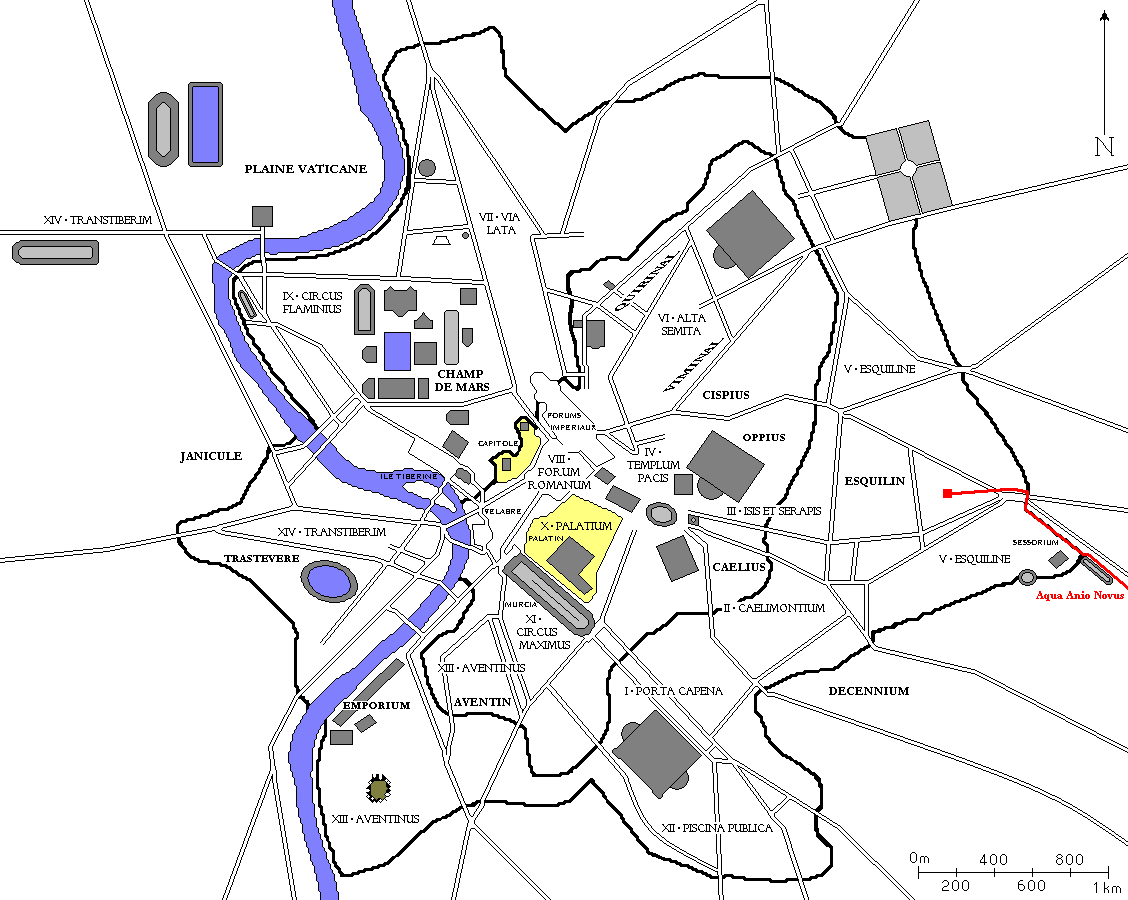 신 아니오 수도의 로마 시내에서의 경로(적색선)
