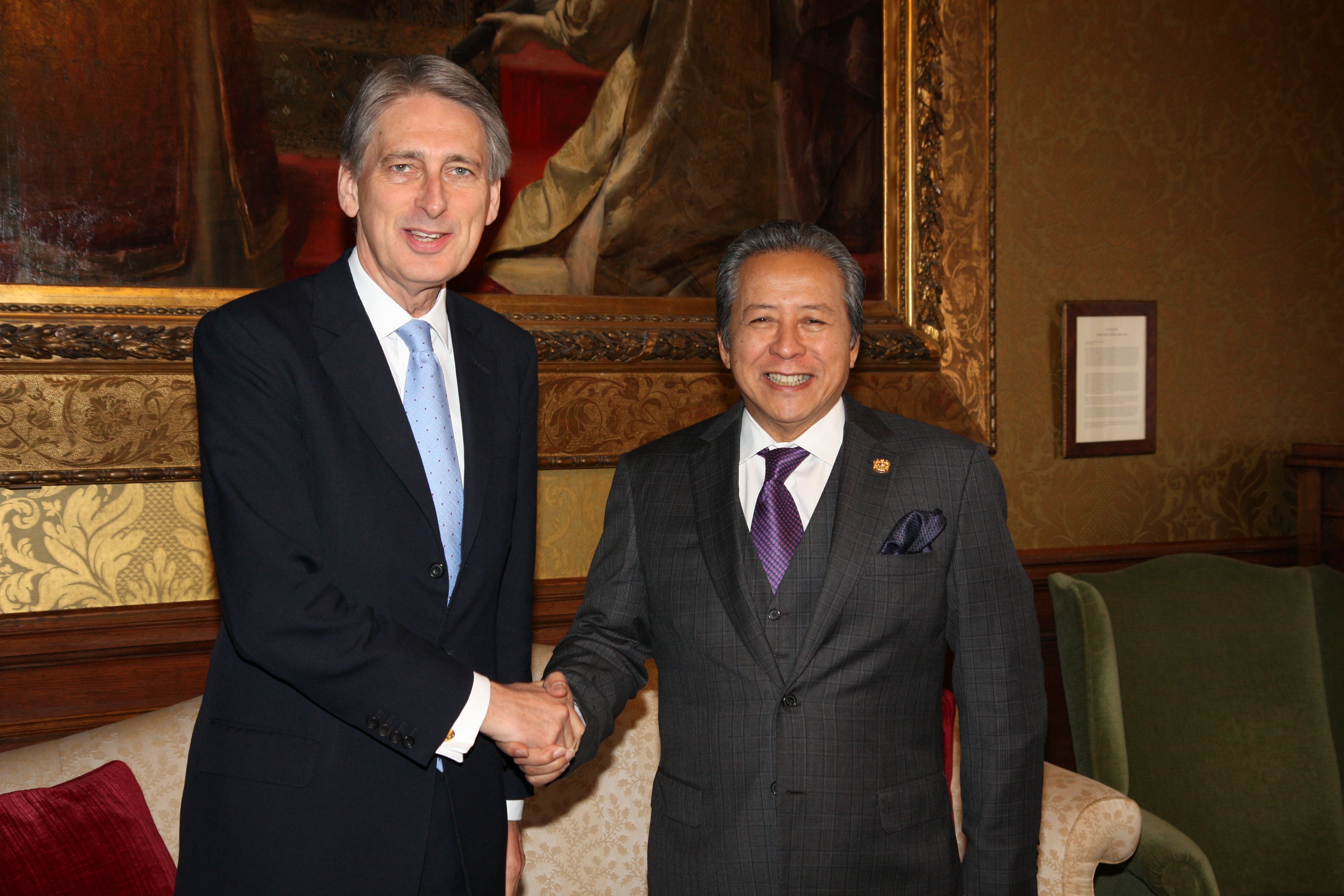 2014년 12월 9일 런던에서 아니파흐가 영국 외무부 장관 필립 해먼드를 만나는 모습.