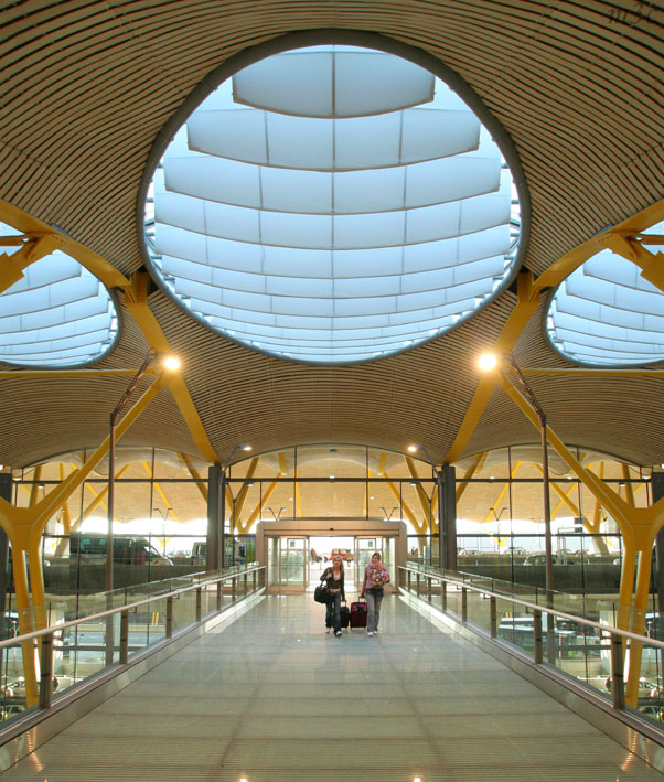 T4는 페로비알이 건설하고 리처드 로저스, 루이스 비달(2006년 스터링상 수상), TPS 엔지니어(2006년 IStructE 어워드 상업 구조물 부문 수상)가 설계했다. T4는 세계에서 가장 큰 공항 터미널 중 하나로, 76만 제곱미터(8,180,572 평방피트) 면적에 지상 구역과 항공 구역 구조물로 구성된다. T4(470000m2)와 T4S(290000m2)는 약 2km 떨어져 있다. T4는 조명, 유리창, 채광창을 통해 자연광을 활용하여 편안한 여행을 돕도록 설계되었다.