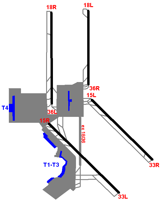 4번 터미널 건설 중에 바라하스 공항으로 도착하고 출발하는 항공 교통 흐름을 돕기 위해 두 개의 활주로(15L/33R 및 18L/36R)가 건설되었다. 이 활주로는 2006년 2월 5일(터미널과 함께) 공식적으로 개장했지만, 그 이전에도 여러 차례 비행 및 항공 교통 기동을 테스트하기 위해 사용되었다. 따라서 바라하스 공항은 4개의 활주로를 갖게 되었는데, 두 개는 남북축에 평행하게 (1.3km 간격으로) 배치되어 있고, 두 개는 북서-남동축에 (1.9km 간격으로) 배치되어 있다. 이를 통해 공항에서 동시에 이착륙이 가능해져 시간당 120회의 운항(30초마다 이착륙 1회)이 가능해졌다.