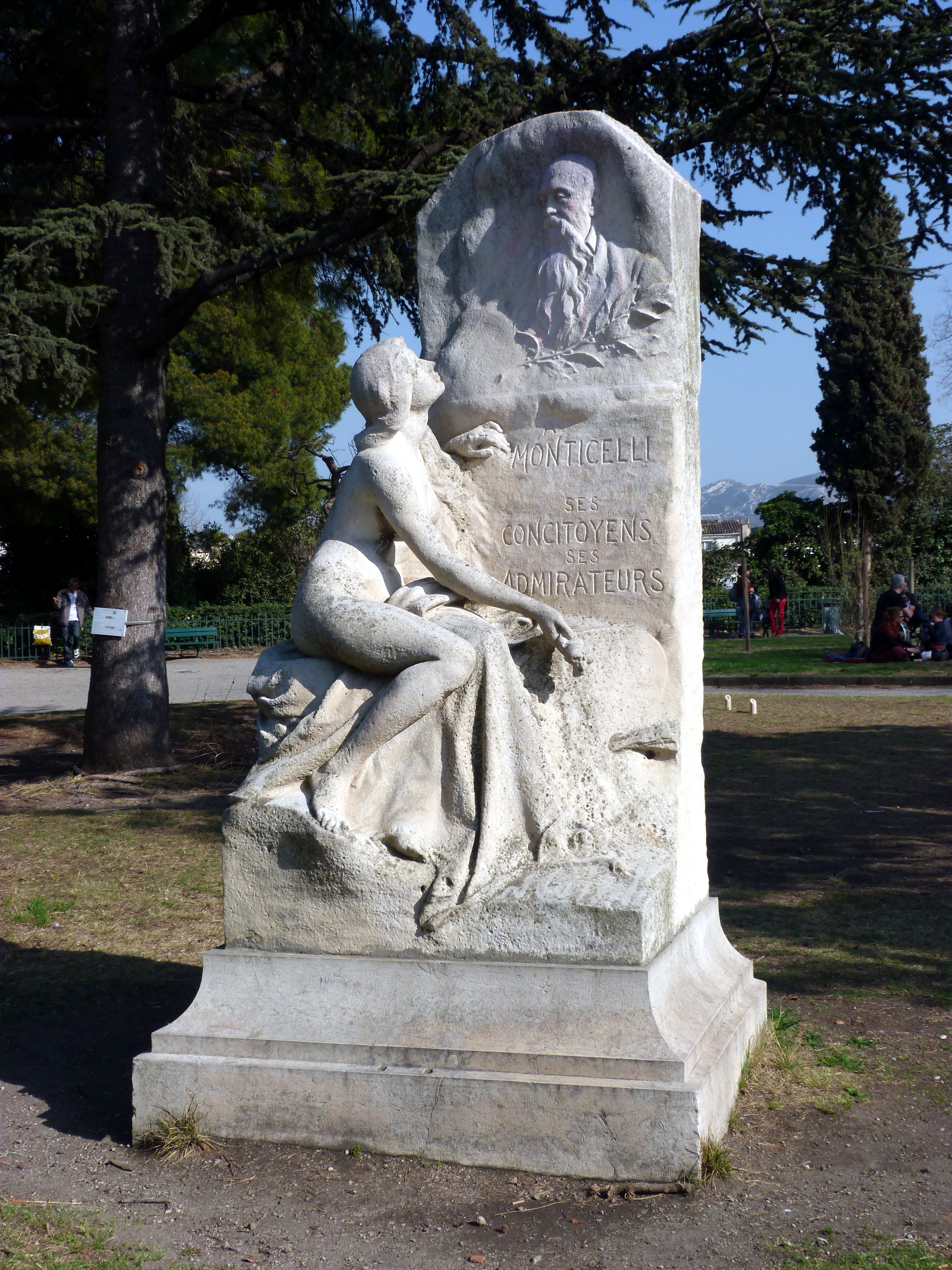 1909년, 마르세유 롱샹 궁전에는 조각가 오귀스트 카를리가 디자인한 몽티셀리 기념비가 설치되었다.