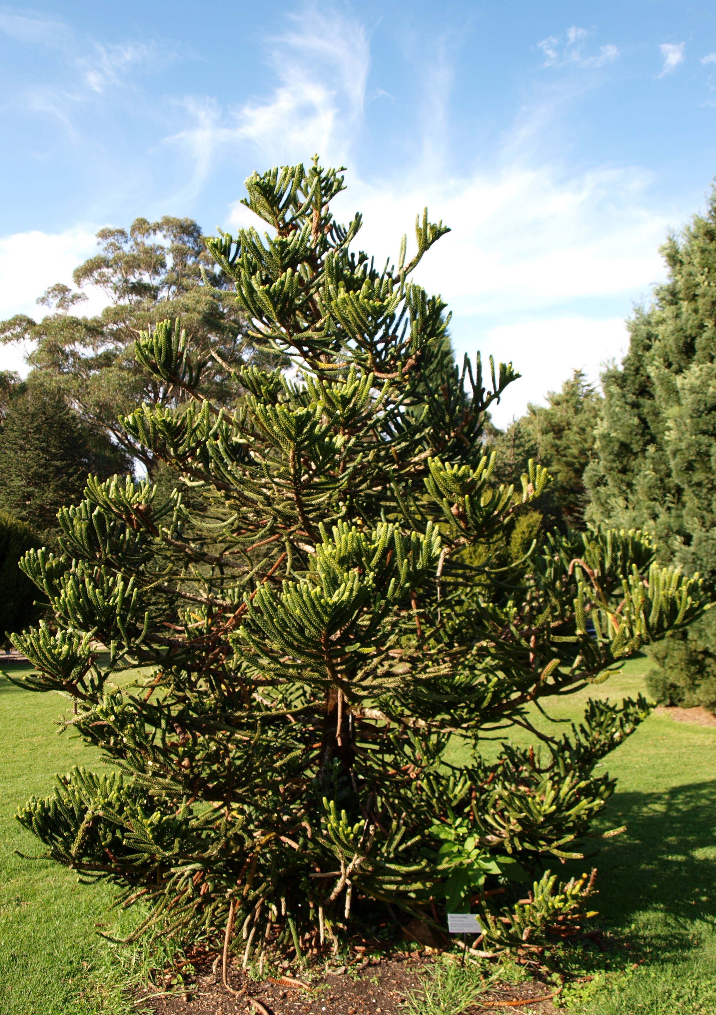 아라우카리아절(sect. ''Araucaria'')은 잎이 넓고 구과의 지름이 12cm 이상이며, 씨앗은 지하 발아(hypogeal)하는 특징을 갖는다.[28][29]6. 2. 분야절 (sect. Bunya)