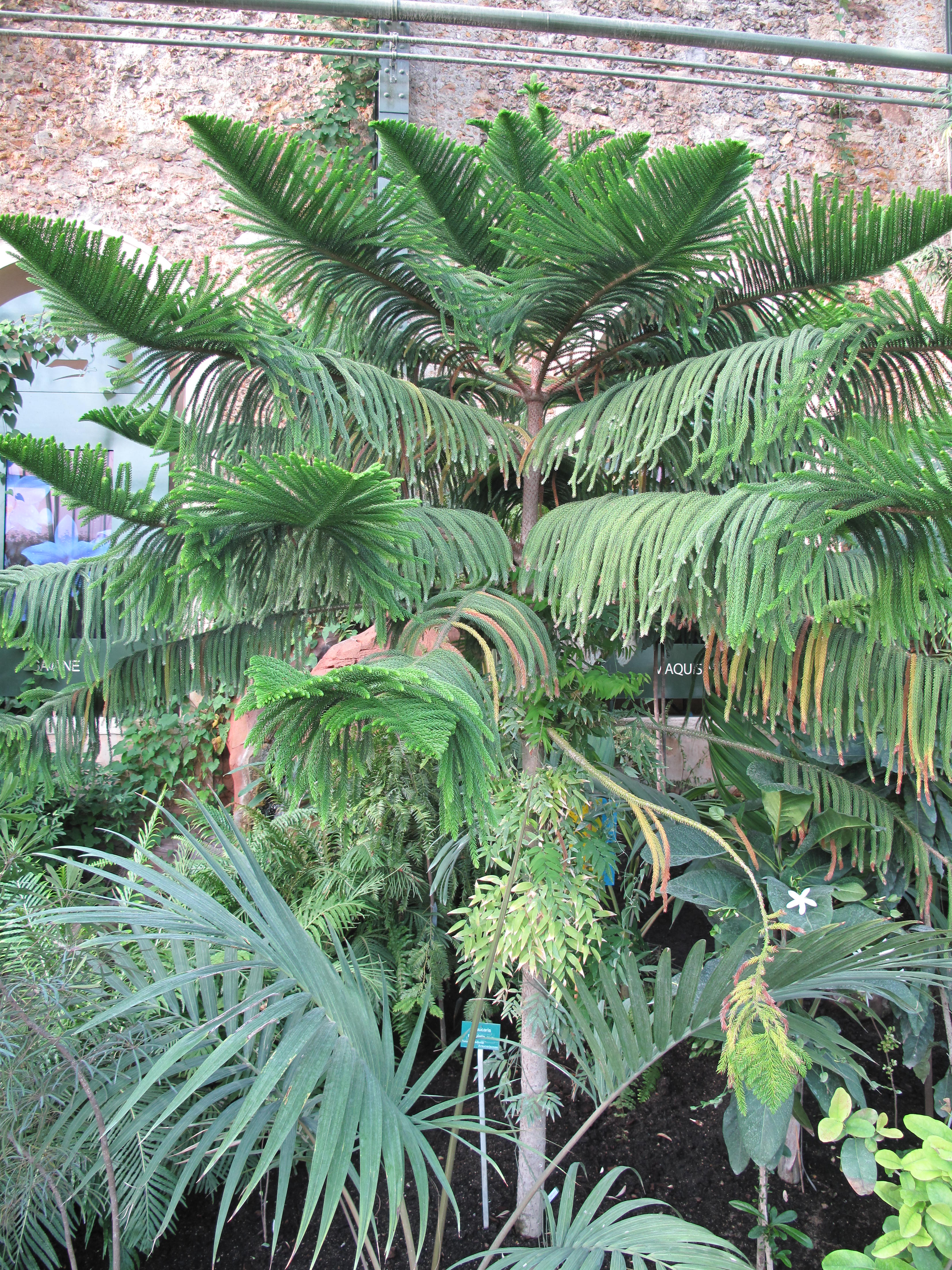 쿠크남양삼나무( ''Araucaria columnaris'')는 뉴칼레도니아에 분포하며, 제임스 쿡 선장의 이름을 따서 명명되었다. 야생에서는 해안 근처 군락에서만 생육하며, 가지가 옆으로 크게 퍼지지 않고 줄기가 탑처럼 높게 뻗어 50미터 이상 자란다.[31]