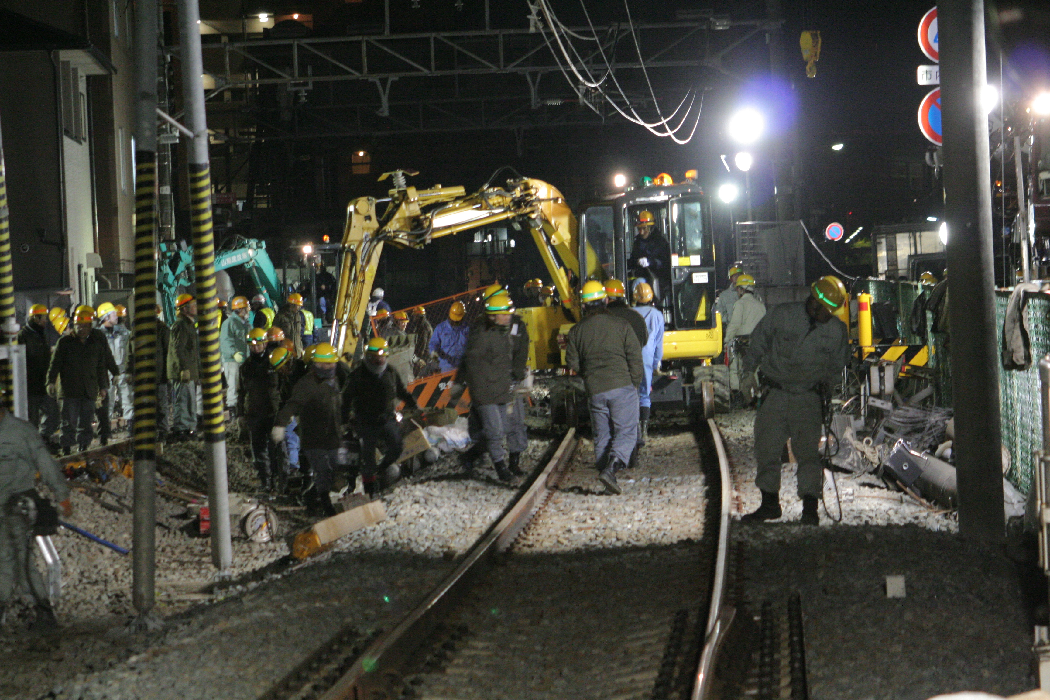 - * 2월 12일: 역 히메지 방면 신코마에 건널목에서 한신 우메다행 직통 특급 열차가 트럭과 충돌, 앞쪽 2량이 탈선하는 사고 발생.[9][10][11][12] 이 사고로 고베・우메다・난바 방면 승강장 뒷부분이 파손되고, 주변 주택과 건물 일부, 선로변 주차 차량 여러 대가 피해를 입었다. 다카사고역 - 오시오역 구간 운행 중단 및 아라이역 영업 일시 중지.