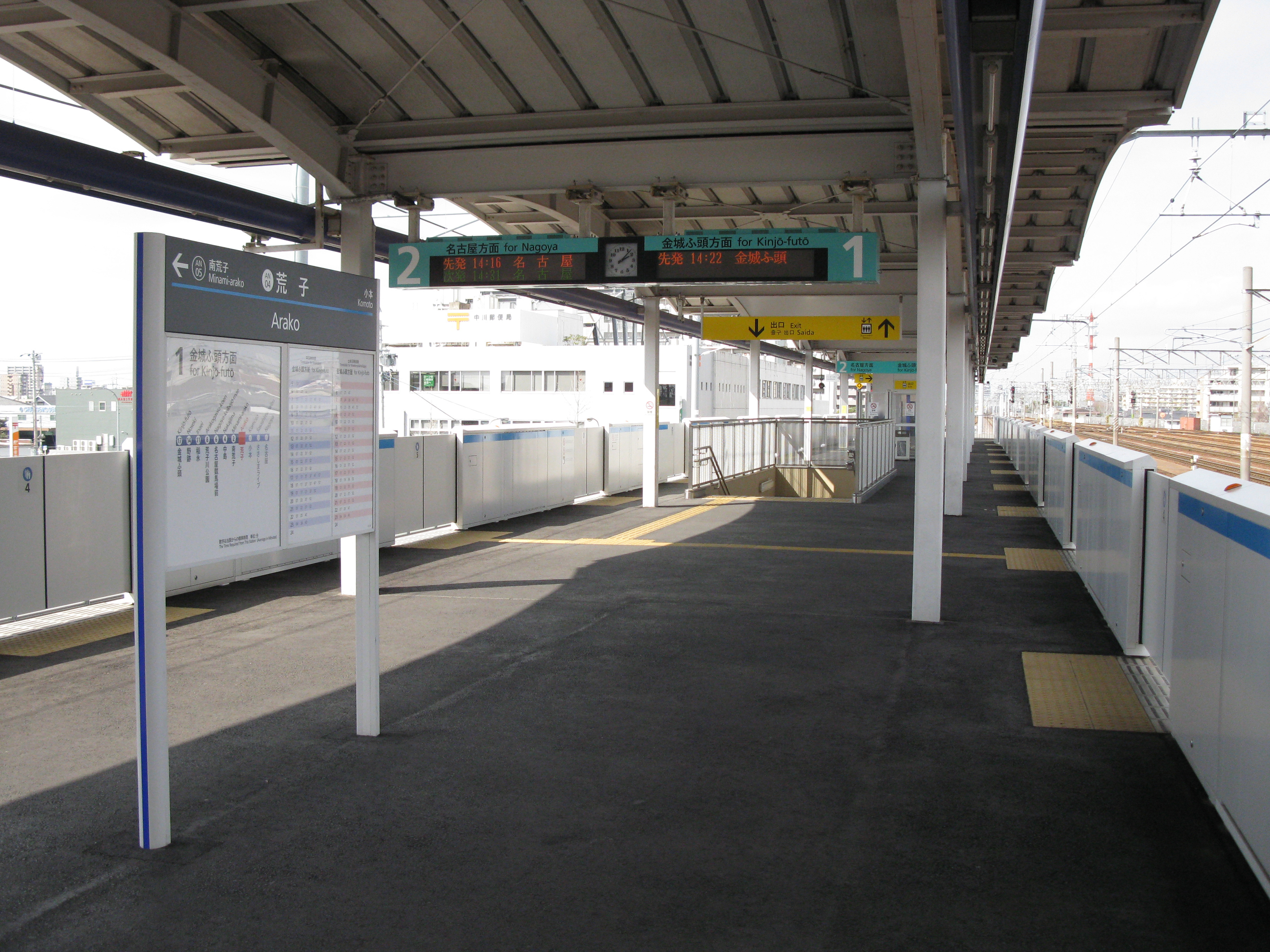 아오나미선은 나고야역이 기점·종점이며 아라코역은 중간역이지만, 아라코역 서쪽으로 700m 정도 떨어진 곳에 메이역, 사카에 등을 지나 나고야 동쪽 끝인 후지가오카에 이르는 나고야 시영 지하철 히가시야마선의 시발·종착역인 다카하타역이 있기 때문에, 아라코역은 이용자 확보에 고전을 면치 못하고 있다. 그러나 나고야역까지 소요 시간은 지하철보다 아오나미선이 더 짧고, 중간역도 적기 때문에 매년 이용자 수가 증가하는 추세에 있다.