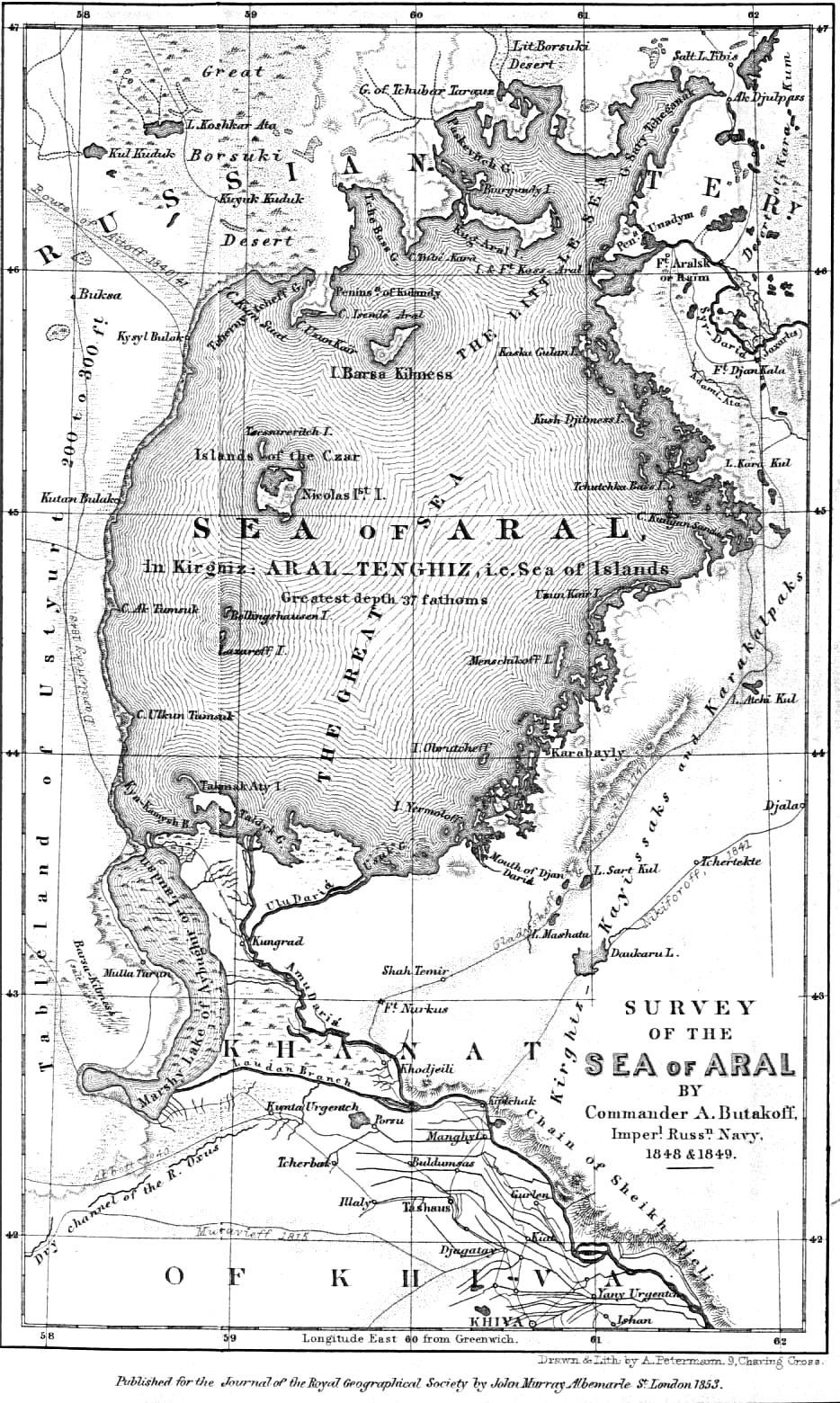 1848년 알렉세이 부타코프가 이끄는 러시아 탐험대가 아랄해에 대한 최초의 관측을 수행했고, 3년 뒤 첫 증기선이 도착했다. 러시아 제국은 아랄해를 영토로 편입하고 "아랄 함대"를 편성했다. 러시아 상인들에 의해 아랄해 어업이 시작되었고, 1903년에서 1905년 사이 트란스아랄 철도가 일부 개통되면서 수출을 염두에 둔 상업적 어업이 본격화되었다.[108]
