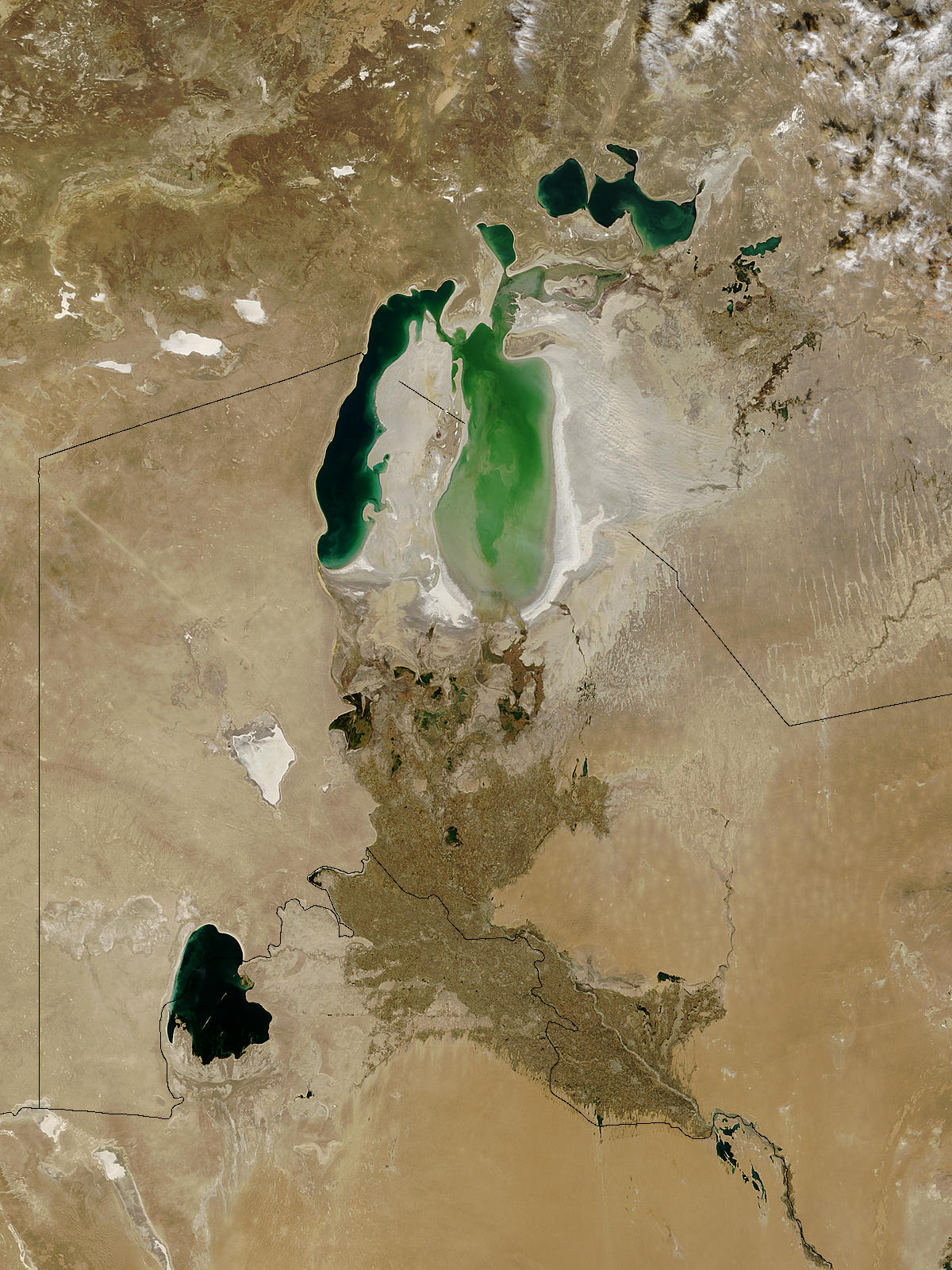 - 살바스 만[108] - 무이나크, 과거 아무다리야 강 하구. 대부분 소멸했지만 일부는 호수로 남아 있다.