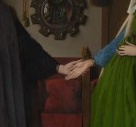 아르놀피니 부부의 초상에 등장한 두 남녀의 맞잡은 손을 보면, 결혼하는 장면이라면 서로의 오른손을 잡았어야 하지만, 남자는 왼손으로 여자의 오른손을 잡고 있다. 이는 당시 신분 차이가 큰 경우 행해지던 '왼손 결혼'으로, 첩을 들이는 것과 비슷한 개념이며 상속권은 인정되지 않았다.[105]