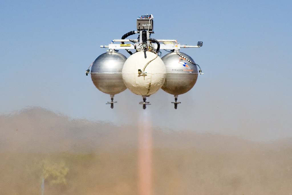 2008년 달 착륙선 챌린지에서는 트루제로(TrueZer0) 팀과 경쟁했다. 아르마딜로는 레벨 1 첫 번째 시도에서 추력이 부족하여 일찍 착륙했고, 두 번째 시도에서는 첫 번째 구간을 완료했지만, 두 번째 구간은 미국 연방 항공청(FAA)가 비행 시간을 종료하여 중단되었다. 이후 두 번째 구간을 완료하여 레벨 1 최고 상금인 350000USD를 받았다.[18] 레벨 2 상금에 도전하려 했으나 연료 라인 문제로 엔진 케이스가 타버려 차량이 전복되면서 중단되었다.