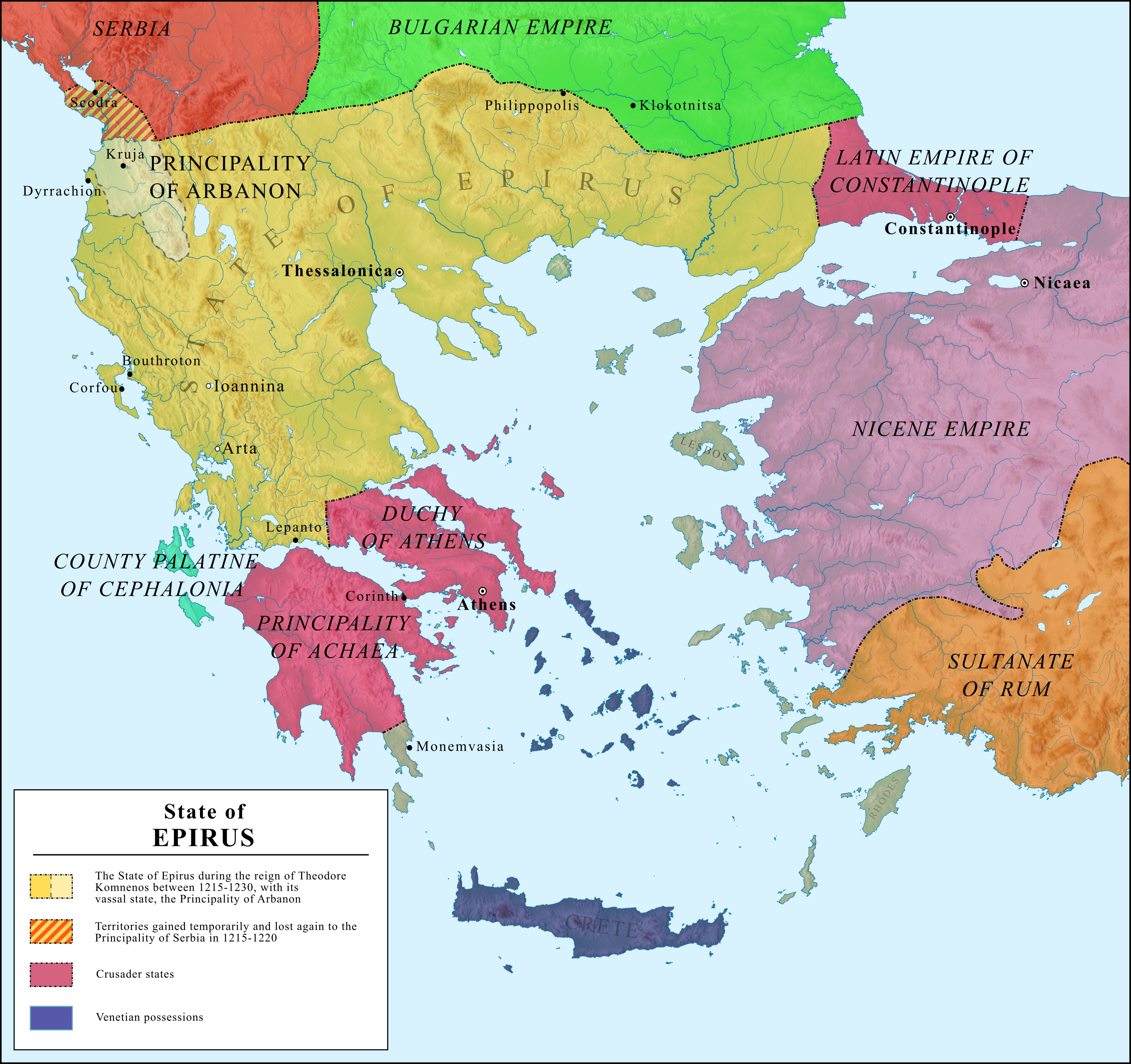 조지 아크로폴리테스는 마지막 단계에 대해 상세히 기록했는데, 당시 영토를 서쪽에서 동쪽으로 두러스와 오흐리드 호 사이, 남쪽에서 북쪽으로 슈쿰빈 강 계곡과 마트 강 계곡 사이에 위치시켰다. 크루예 요새는 이 지역이 존속하는 동안 군사 및 행정 중심지였다.