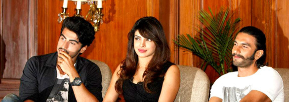 2014년 ''Gunday'' 기자 회견에서 카푸어, 란비르 싱, 프리얀카 초프라.