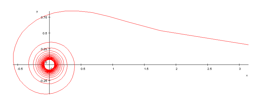 위의 방정식은 부분 적분법을 적용하여 적분할 수 있으며, 다음 매개변수 방정식을 얻을 수 있다.
