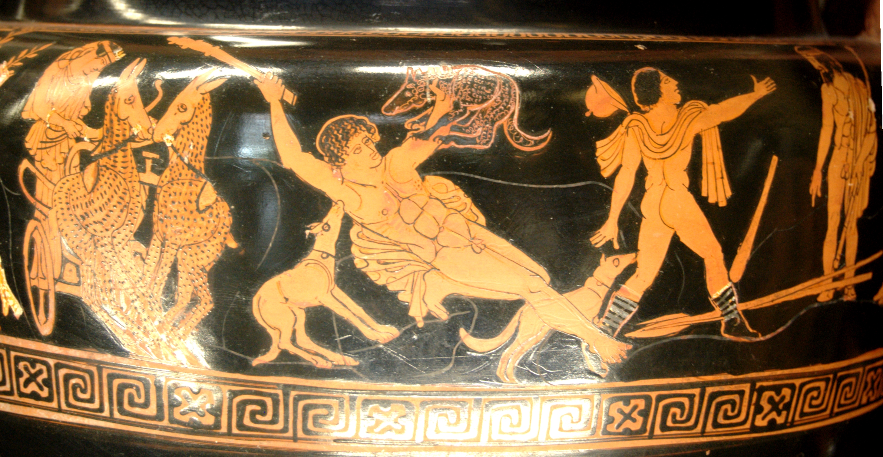 아이스킬로스는 액타이온 신화에 대해 "개들이 그들의 주인을 완전히 파괴했다"라고 언급했다.[205] 에우리피데스는 ''바카이''에서 액타이온이 아르테미스보다 더 뛰어난 사냥꾼이라고 주장했다고 썼다.[207] 칼리마쿠스는 액타이온이 숲에서 목욕하는 아르테미스를 우연히 만났다고 했다.[208]