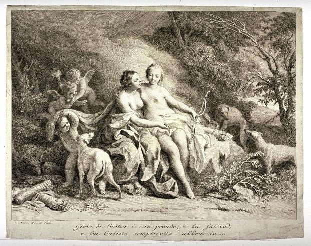 칼리스토(Kallistō)는 아르카디아의 뉘뻬였지만, 정결을 서약하고 아르테미스를 따랐다. 제우스는 모습을 바꾸어 칼리스토에게 접근하여 그녀를 사랑했다. 이렇게 두 사람 사이에 아르카디아의 조상이 되는 아르카스가 태어났지만, 아르테미스는 이를 분노하여 그녀를 암곰으로 만들었다(일설에는 헤라가, 또는 제우스 자신이 암곰으로 만들었다고 한다).[377] 칼리스토는 아르테미스에 의해 죽임을 당했다고도 하고, 아들 아르카스가 그것을 알지 못하고 곰으로 생각하여 그녀를 죽였다고도 한다.
