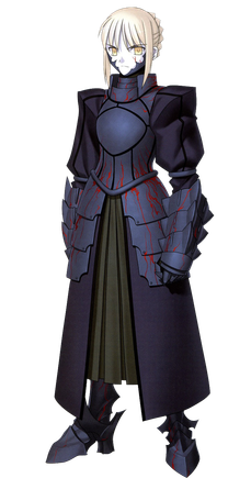 세이버의 진명은 아르토리아 펜드래건(Artoria Pendragon)이며, 때때로 알트리아(Altria), 아르투리아(Arthuria 또는 Arturia)로 표기되기도 한다.[5][6][7][8][9] 이 캐릭터는 아서 왕 전설에서 영감을 받아 만들어졌다. 아르토리아는 우서 펜드래건 왕의 딸로 태어났지만, 당시 영국의 신하들이 여성을 정당한 통치자로 받아들이지 않을 것을 우려한 우서 왕에 의해 출생 사실과 성별이 비밀에 부쳐졌다. 마법사 멀린은 아르토리아를 충성스러운 기사 엑터 경에게 맡겼고, 엑터 경은 그녀를 자신의 아들처럼 키웠다.