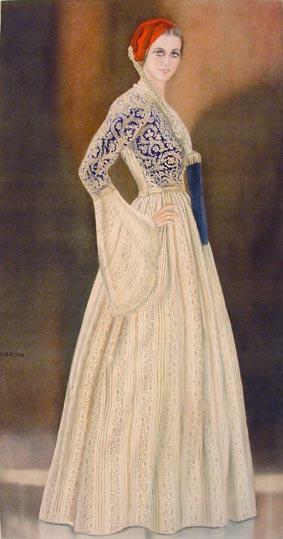 이 드레스는 비더마이어 스타일을 따르며, 헐렁한 흰색 면 또는 실크 셔츠를 특징으로 한다. 셔츠는 목과 소매단에 레이스로 장식되는 경우가 많고, 그 위에 일반적으로 짙은 남색 또는 클라레 벨벳으로 된 풍성하게 자수된 재킷이나 조끼를 착용한다. 치마는 발목 길이였고, 다림질하지 않은 주름이 없는 실크였으며, 색상은 보통 하늘색이었다. 이 드레스는 전통적으로 기혼 여성이 착용하는 부드러운 모자나 페즈 또는 미혼 여성이 착용하는 ''칼파키''(토크)로 완성되었으며, 때로는 교회에 갈 때 검은 베일을 함께 착용하기도 했다. 이 드레스는 오스만 제국이 점령한 발칸 지역과 베오그라드 북부의 해방된 발칸 지역에 이르기까지 모든 기독교인 도시 여성들의 일반적인 복장이 되었다.