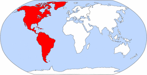 남아메리카는 약 1억 3,500만 년 전 초대륙 곤드와나의 서쪽에서 분리되어 독립 대륙을 형성했다.[56] 약 1,500만 년 전, 카리브 해판과 태평양판의 충돌로 인해 국경을 따라 일련의 화산이 생성되어 여러 섬이 생겨났다. 중앙아메리카 제도의 틈은 북아메리카와 남아메리카에서 침식된 물질과 지속적인 화산 활동으로 생성된 새로운 땅으로 채워졌다. 300만 년 전까지 북아메리카와 남아메리카 대륙은 파나마 지협으로 연결되어 아메리카라는 단일 대륙을 형성했다.[57] 이후 발생한 대미주 생물 교류는 쿠거, 나무늘보, 주머니쥐, 아르마딜로, 벌새 등 많은 종들이 아메리카 대륙 전역으로 퍼져나가는 결과를 가져왔다.[58]