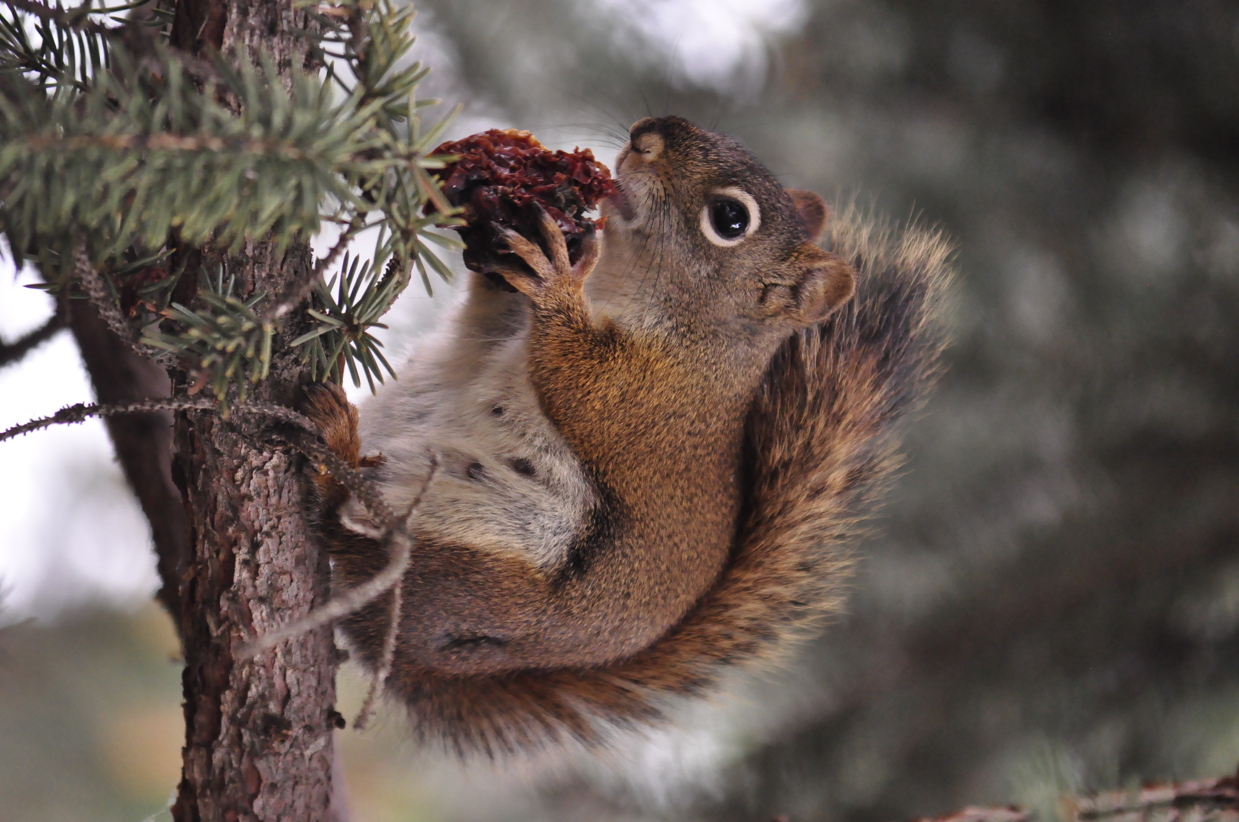 Red Squirrel Harvesting and Storing White Spruce Cones