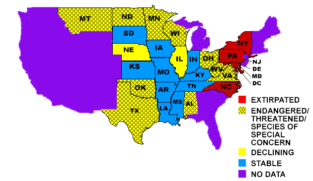 아메리카주걱철갑상어는 미시시피강 유역의 토착종으로, 역사적으로 북서쪽의 미주리강과 옐로스톤강에서 오하이오강 그리고 북동쪽의 앨러게니강까지 발생하고, 미시시피강의 수원은 남쪽에서 입까지, 남서쪽의 샌재신토강에서 톰빅비강과 앨라배마강까지이다.[123] 뉴욕주, 메릴랜드주, 펜실베니아주뿐만 아니라 캐나다의 휴런호와 헬렌호를 포함한 오대호 지역의 주변 지역 대부분에서 멸종되었다.[134][133] 1991년, 펜실베니아주는 오하이오강 상류와 앨러게니강 하류에 자급자족하는 개체군을 만들기 위한 노력으로 부화장에서 자란 아메리카주걱철갑상어를 활용한 재도입 프로그램을 시행했다.[135] 1998년, 뉴욕주는 킨주아 댐 위에 있는 알레게니 저수지에서 상류에 스타킹 프로그램을 시작했고, 2006년에는 상대적으로 그들의 역사적 범위 중 변경되지 않은 부분인 코넬왕고 크릭에서 두 번째 스타킹을 시작했다.[136] 펜실베니아주와 뉴욕주에서 자망에 의해 포획된 자유 거리 성인에 대한 보고는 있었지만, 자연 번식에 대한 증거는 없다.[135][136] 현재 미국의 22개 주에서 발견되며, 주와 연방법에 의해 보호되고 있다. 아메리카주걱철갑상어의 상업적 또는 스포츠 낚시를 허용하는 13개의 주가 있다.[126]