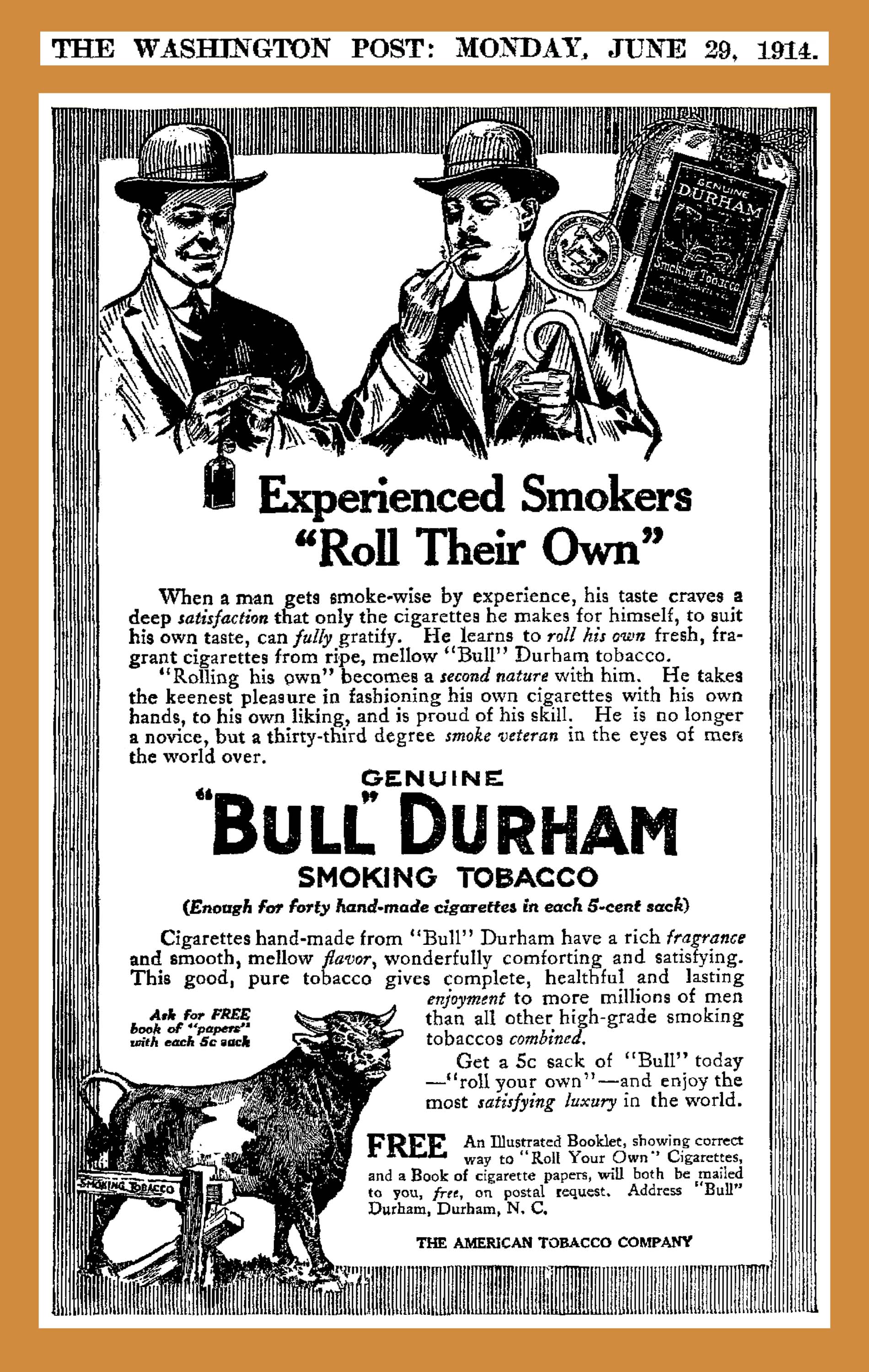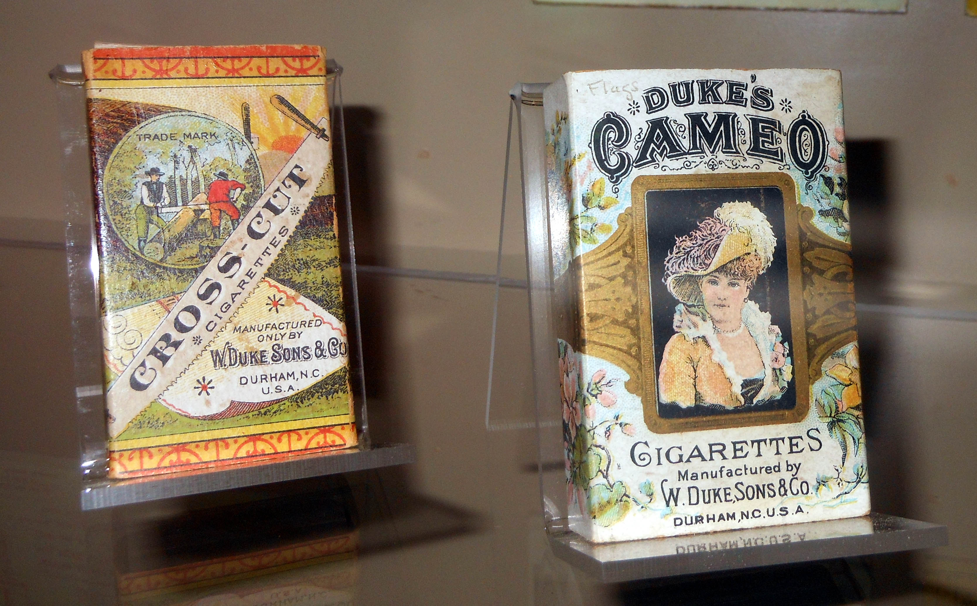 제임스 뷰캐넌 듀크는 1879년, 찢어진 파우치형 흡연용 담배 사업에서 불 더럼(Bull Durham) 브랜드와 경쟁하기보다는 새로운 사업에 진출하기로 결정하면서 담배 산업에 발을 들였다.[4] 1882년, W. 듀크 앤 선스 컴퍼니가 담배 사업에 진출한 지 2년 후, 제임스 본삭은 담배 제조기를 발명했다. 이 기계는 분당 133개 이상의 담배를 생산했으며, 담배 제조 비용을 50% 절감했다.[5][6] 이 기계는 각 담배를 정밀하게 잘라 균일한 형태의 담배를 만들었으나, 이러한 균일함은 사회적으로 좋지 않게 받아들여져 앨런 앤 긴터는 즉시 이 기계를 거부했다.[7]