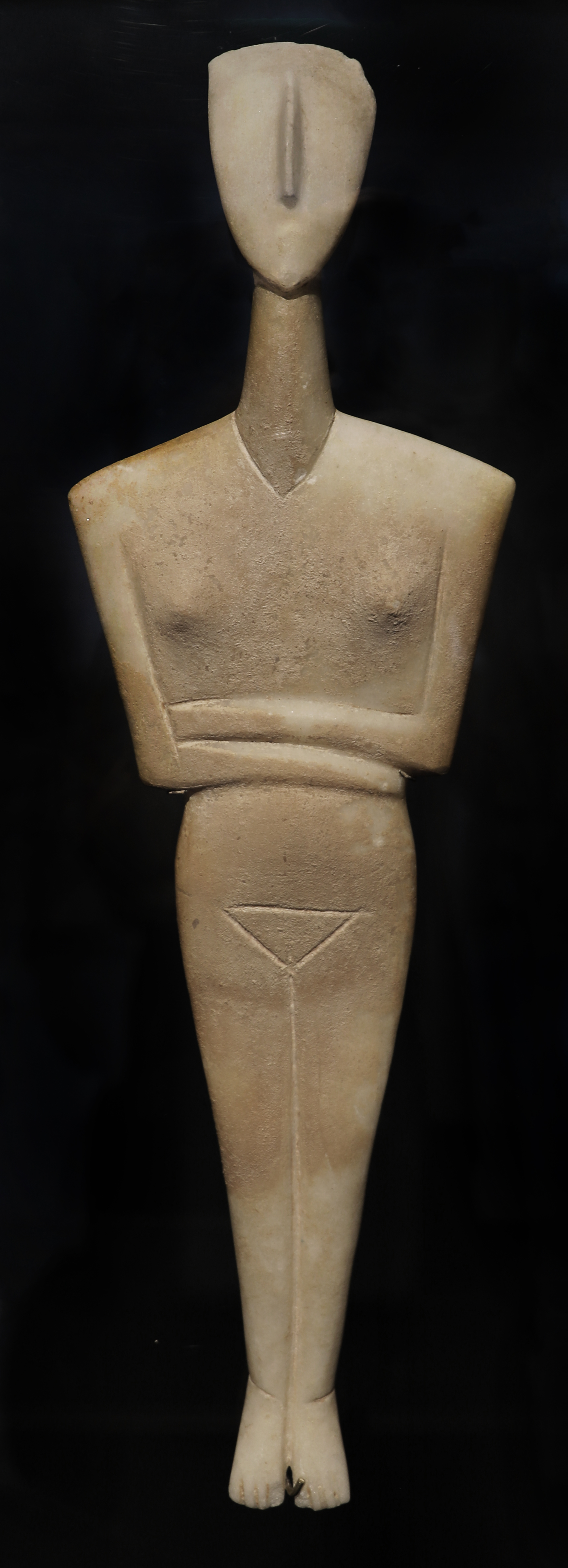 '도카티스마타 키클라데스 조각상'은 이보다 약간 늦은 기원전 2400년~2100년 사이에 제작되었다. 섬세하게 조형되고 다소 둥근 형태를 특징으로 하는 가장 일반적이고 유명한 유형의 조각상인 스페도스 유형의 조각상에 비해, 도카티스마타 유형의 조각상은 더 가늘고 때로는 각진 실루엣을 보인다.