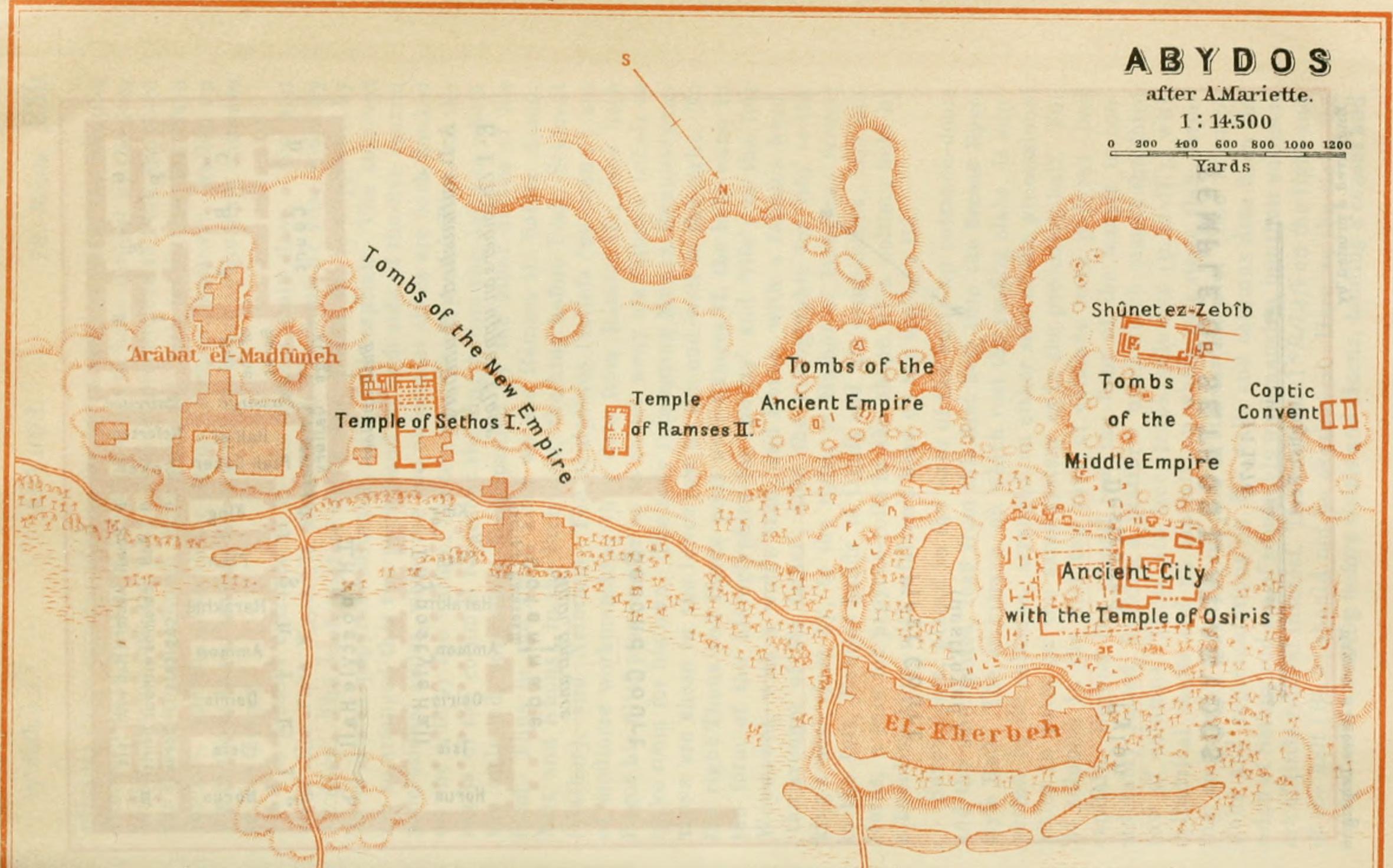 초기 정착 지역에는 거대한 진흙 벽돌 구조물이 있었던 것으로 추정된다. 여기에는 초기 오시리스 신전이 포함되어 있다. 제6 왕조의 페피 1세는 수년에 걸쳐 오시리스의 대 신전으로 발전한 장례 예배당을 건설했으며, 그 유적은 여전히 마을 구역 내에 존재한다. 아비도스는 이시스와 오시리스 숭배의 중심지가 되었다.[15]3. 6. 기타 유적