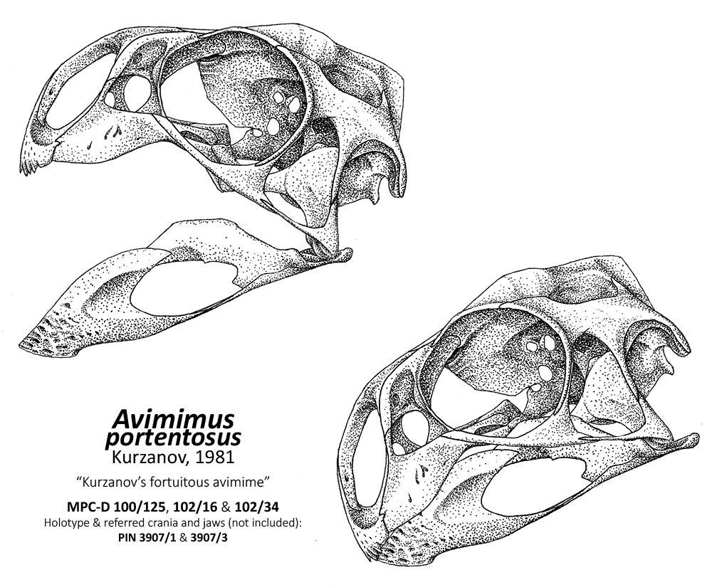 ''아비미무스''는 원래 조류와 유사한 독특한 특징을 가지고 있어 조류의 매우 가까운 친척으로 여겨졌다. 쿠르자노프는 ''시조새''보다 ''아비미무스''가 현대 조류의 직접적인 조상에 더 가깝다고 주장했다.[9] 그러나 이러한 견해는 이후의 계통 발생 분석에 의해 뒷받침되지 않았다. 대부분의 현대 과학자들은 ''아비미무스''가 오비랍토르과에 속한다고 본다.[11][12]