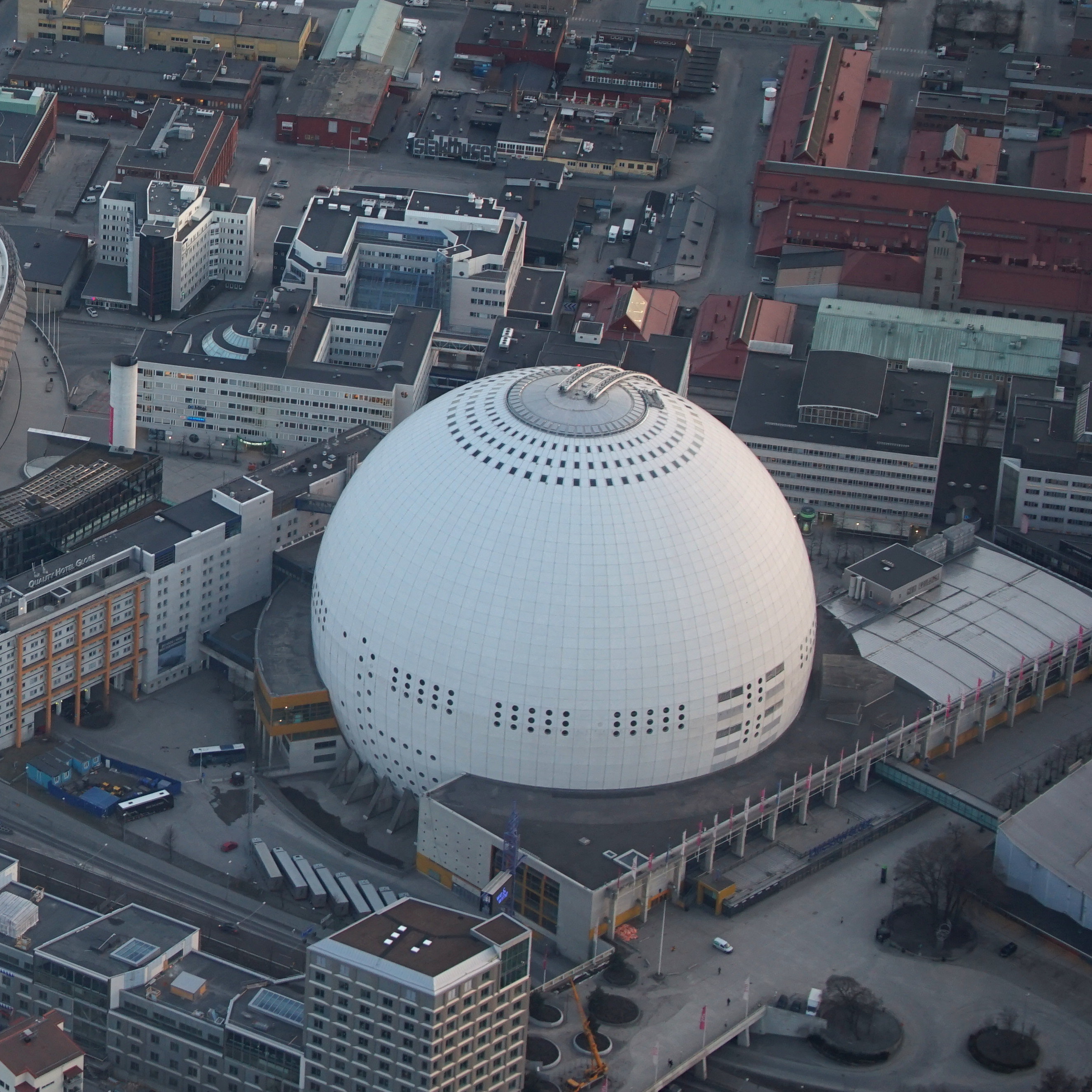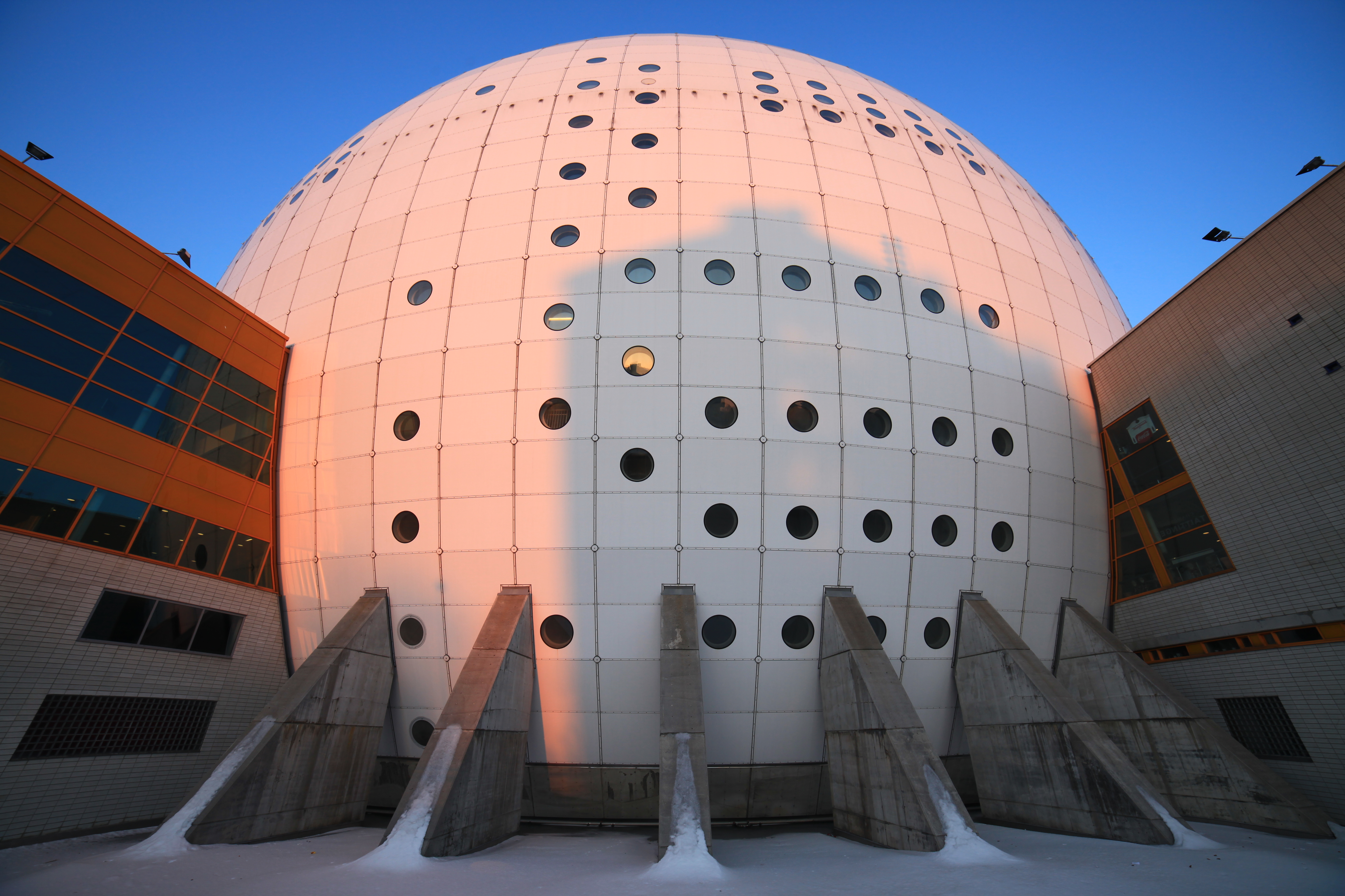 1989년에 완공된 이 경기장은 세계 최대의 반구형 건물로, 지름 110m, 내부 높이 85m이며, 스웨덴 태양계의 태양을 상징한다.[21]
