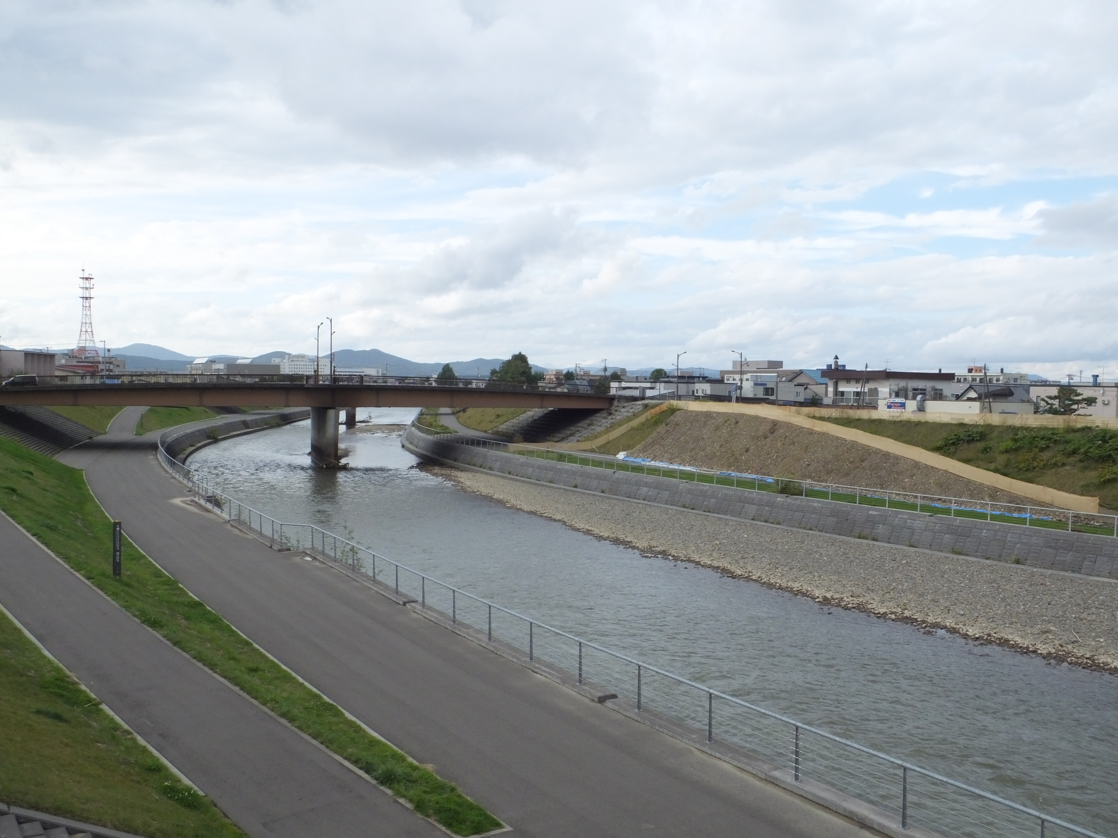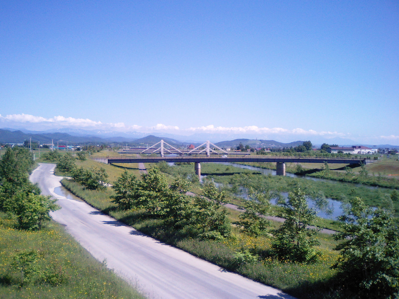 홋카이도 거의 중앙의 가미카와 분지 중심부에 위치한다. 이시카리강, 주베쓰강, 비에이강, 우시슈베쓰강 등 크고 작은 130개의 하천이 흐르고 740개의 다리가 가설되어 있다. 그 중에서도 이시카리강과 우시슈베츠강이 만나는 곳에 있는 아사히바시는 1932년 완성한 철제 아치교로 홋카이도 유산에 선정되어 있다.[4]
