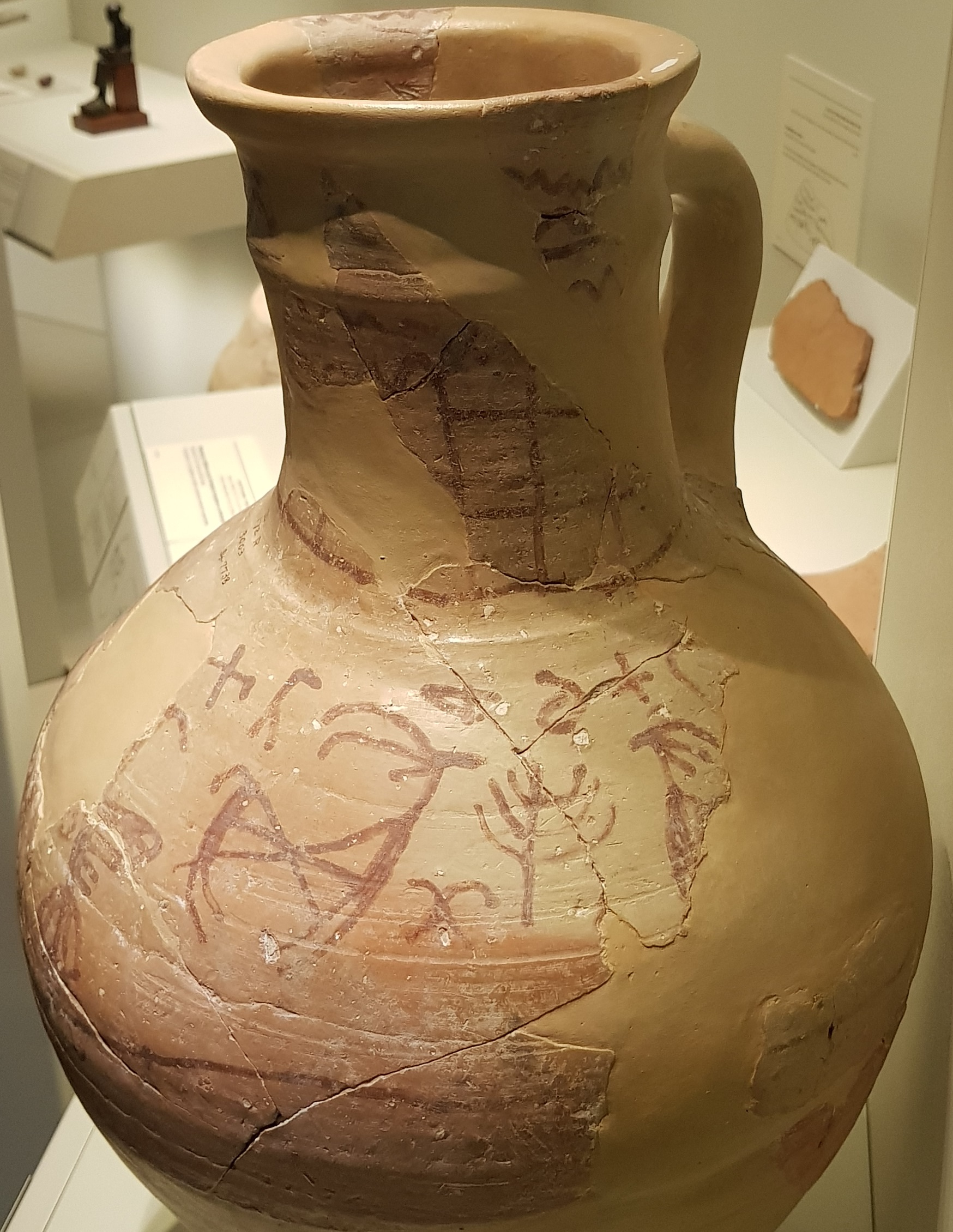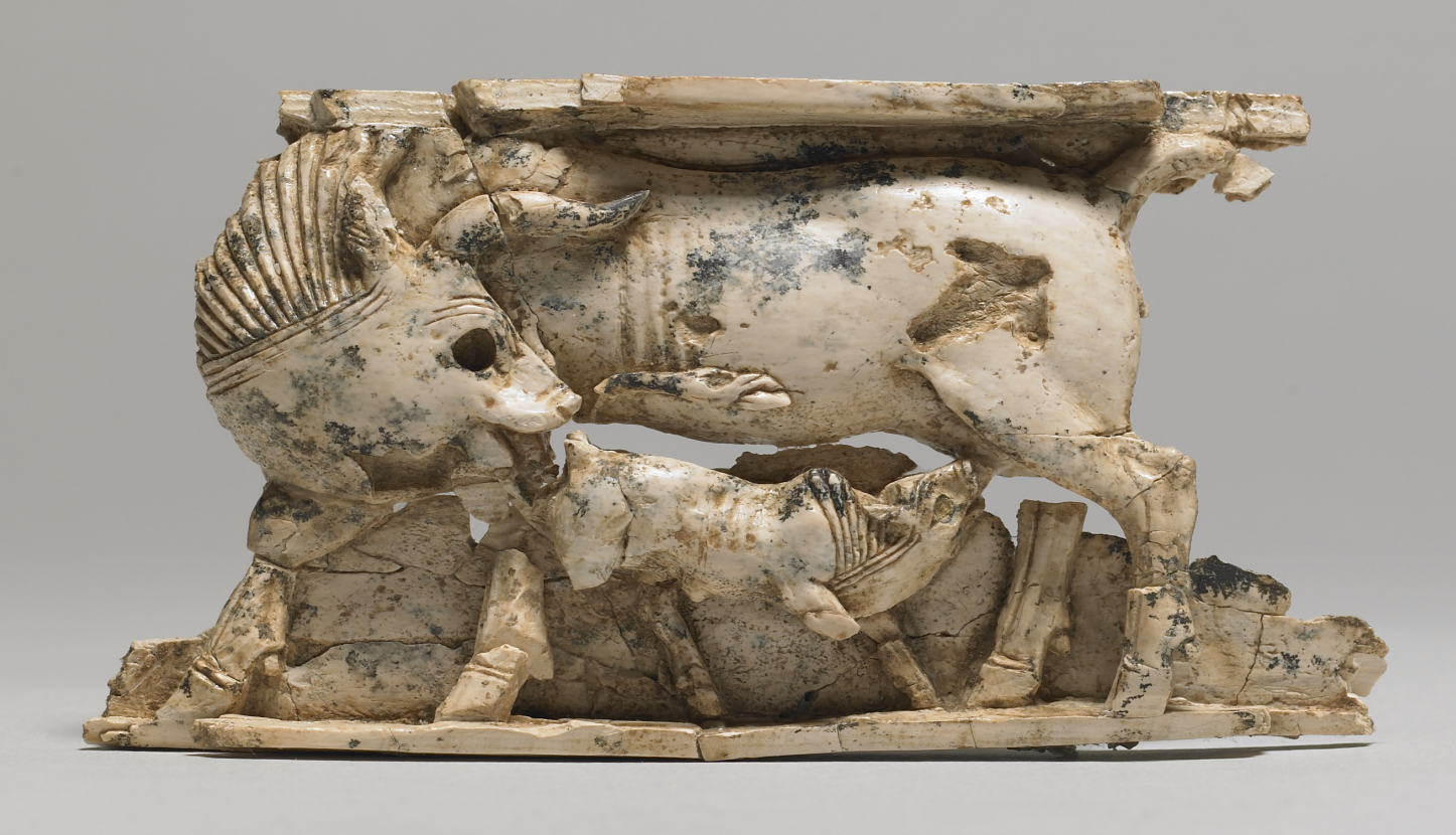 한 토기 조각에는 크고 작은 소가 나타나 있는데,[45] 이는 아르슬란 타슈 유물과 같이 시리아와 페니키아 상아에서 매우 일반적인 모티프이다.
