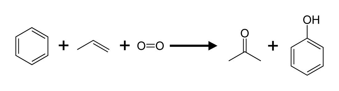 적절한 촉매 존재 하에 두 아세톤 분자는 결합하여 다이아세톤 알코올을 형성하고, 이는 탈수 반응을 통해 메시틸옥사이드가 된다. 메시틸옥사이드는 추가적인 아세톤 분자와 결합하여 포론 등의 화합물을 생성할 수 있다.[46]