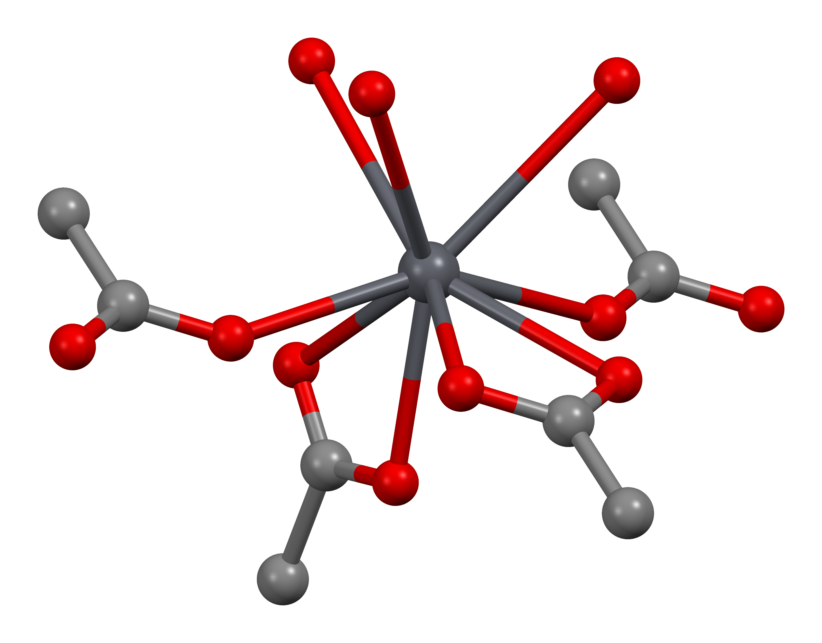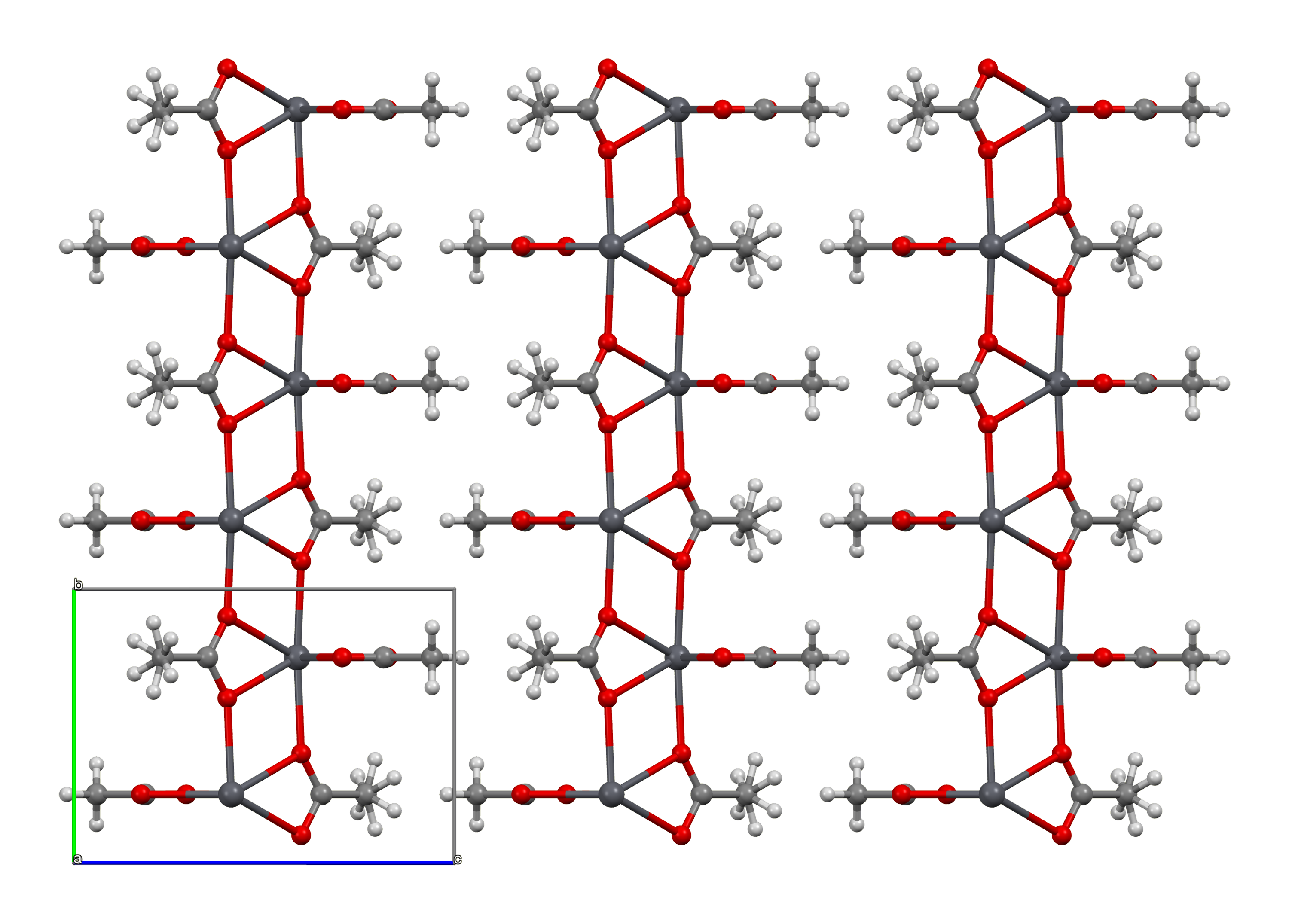 무수 아세트산 납(II)의 결정 구조는 2차원 배위 고분자로 묘사된다. 반면, 아세트산 납(II) 3수화물의 구조는 1차원 배위 고분자이다.[8] 3수화물에서 Pb2+ 이온의 배위권은 3개의 물 분자, 2개의 이배위 아세테이트 그룹 및 2개의 가교 아세테이트 그룹에 속하는 9개의 산소 원자로 구성된다. Pb에서의 배위 기하학은 단일 덮개 사각 반각기둥이다.[9][10] 3수화물은 열분해되어 반수화물 Pb(OAc)2·½H2O, Pb4O(OAc)6 및 Pb2O(OAc)2와 같은 염기성 아세테이트로 분해된다.[8]