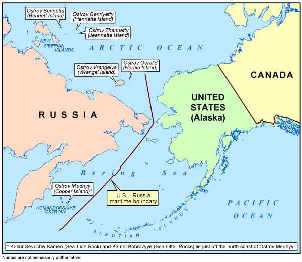 미국-소련 해양 경계 협정에 따른 미국과 러시아의 국경.