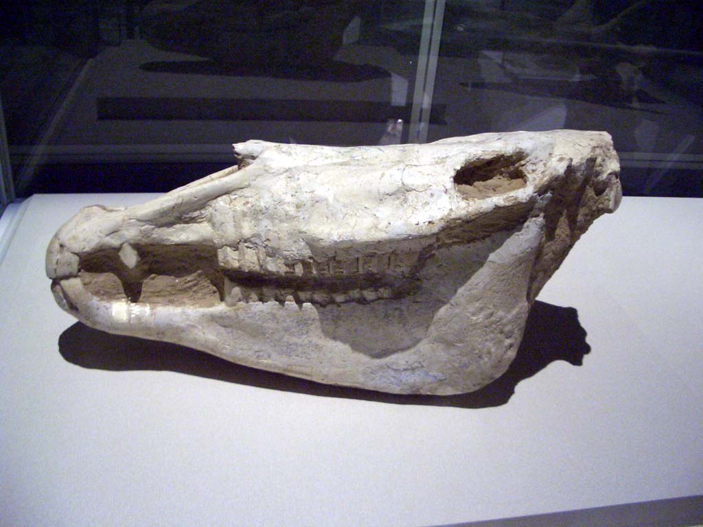 현존하는 모든 말과를 포함하는 속인 ''Equus''는 중간 형태인 ''Plesippus''를 거쳐 ''Dinohippus''에서 진화한 것으로 여겨진다. 가장 오래된 종 중 하나는 얼룩말과 유사하고 당나귀 모양의 머리를 가진 ''Equus simplicidens''이다. 지금까지 가장 오래된 화석은 미국 아이다호에서 발견되었으며 약 350만 년 전의 것이다.[8]