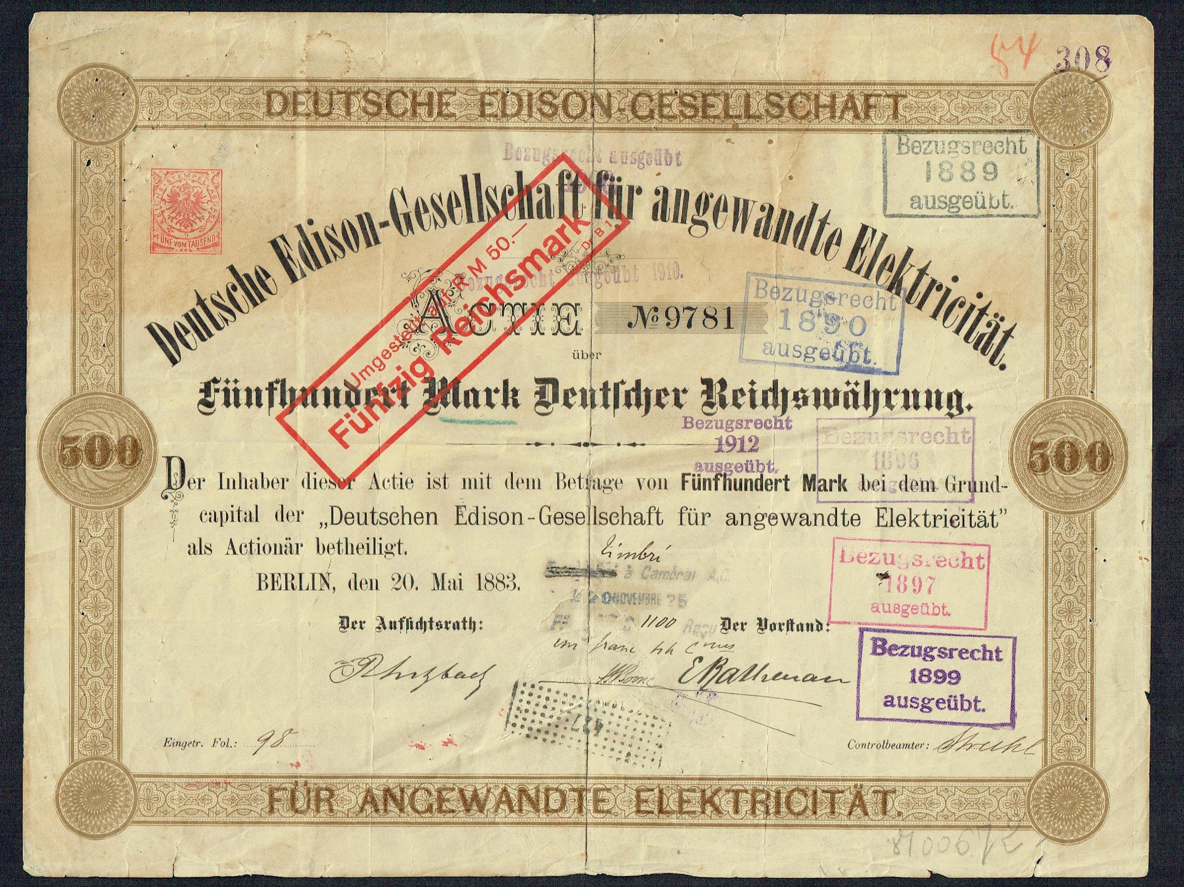 창립 | 1883년, 베를린 (Deutsche Edison-Gesellschaft für angewandte Elektricität) |