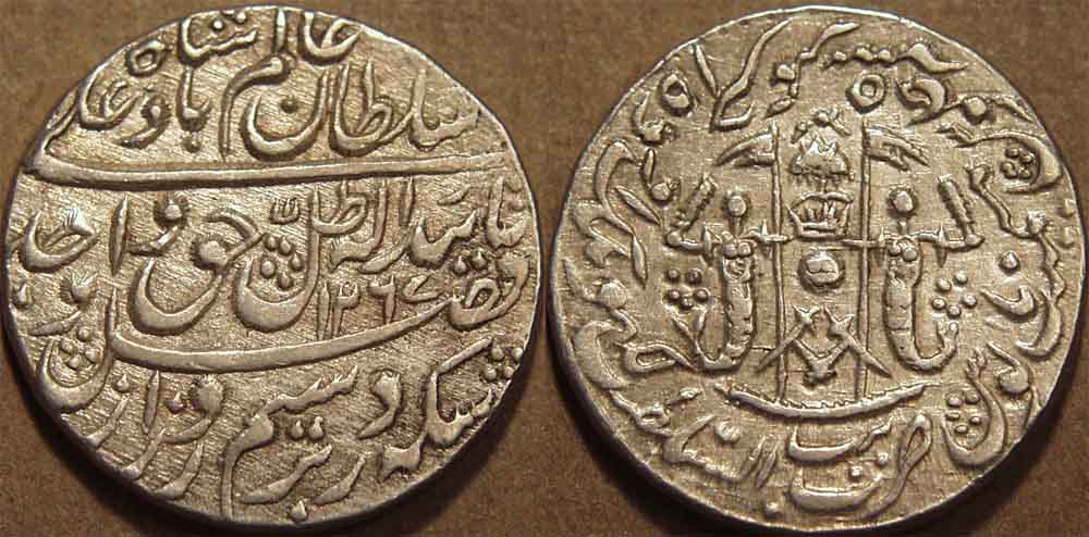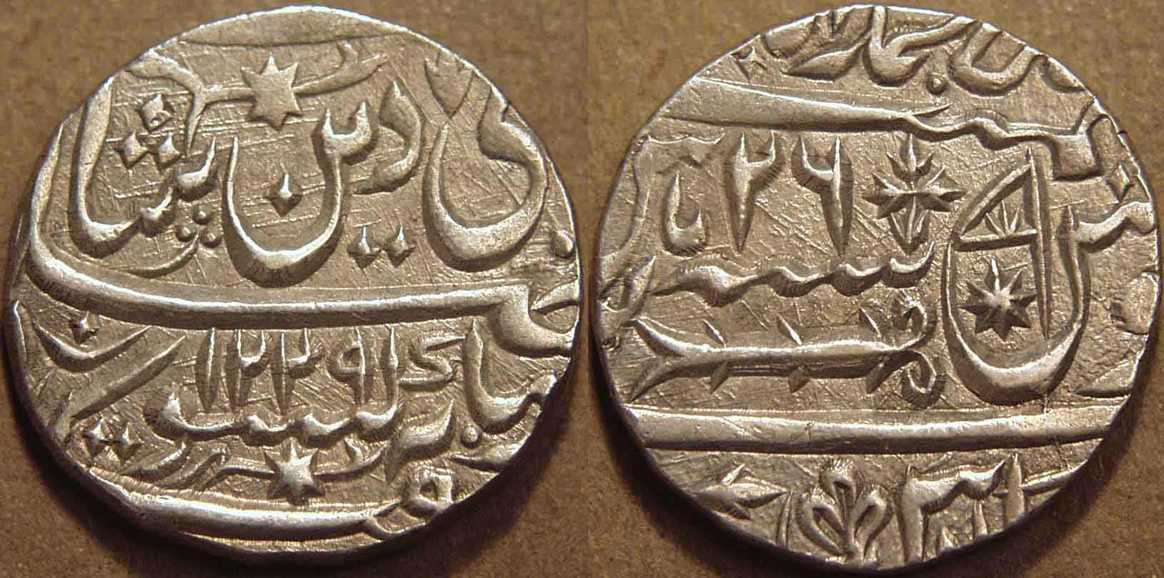 나와브 가지우딘 하이다르가 1819년에 자신의 이름으로 동전을 주조하기 시작했다. 그 직후, 아와디 동전에는 왕국의 유럽식 문장이 등장하기 시작했다.