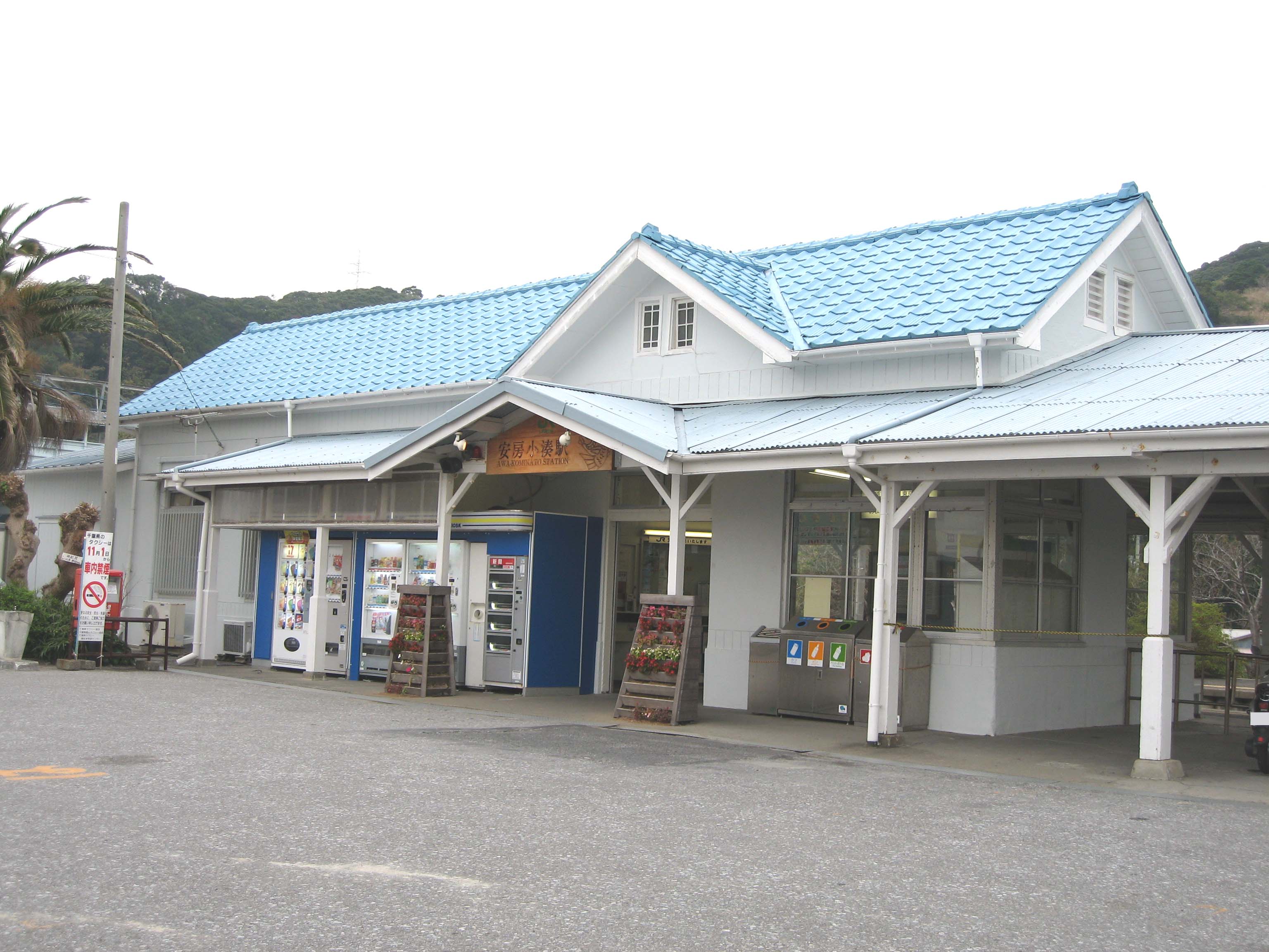 지바현 가모가와시에 있는 아와아마쓰역은 1929년 개업한 JR 동일본 소토보 선의 역으로, 2면 2선의 상대식 승강장을 갖춘 지상역이며 무인역으로 운영되다가 Suica 사용이 가능해졌고, 주변에는 해수욕장과 신명궁 등의 관광 명소가 있다. - 가모가와시의 교통 - 후토미역 (지바현)