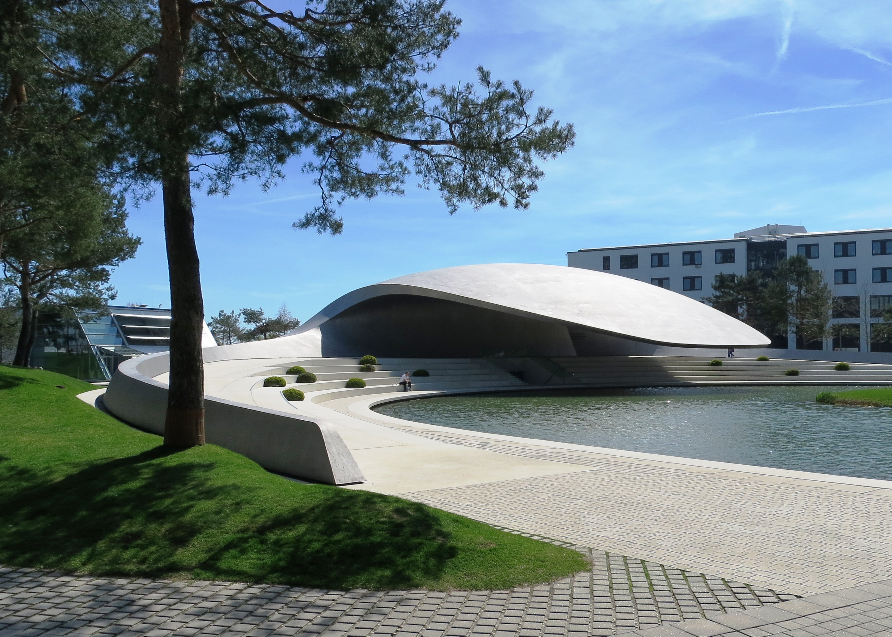 아우토슈타트는 연간 약 200만 명의 방문객을 유치한다.[3] 각 건물마다 초현대적인 건축물이 특징으로, 파빌리온 사이에는 물과 초목이 광범위하게 사용되었으며 잔디로 덮인 흙 언덕이 있다. 현대적인 디자인은 파빌리온뿐만 아니라 벤치와 의자 같은 가구에도 적용되었다.3. 2. 주요 시설 및 체험