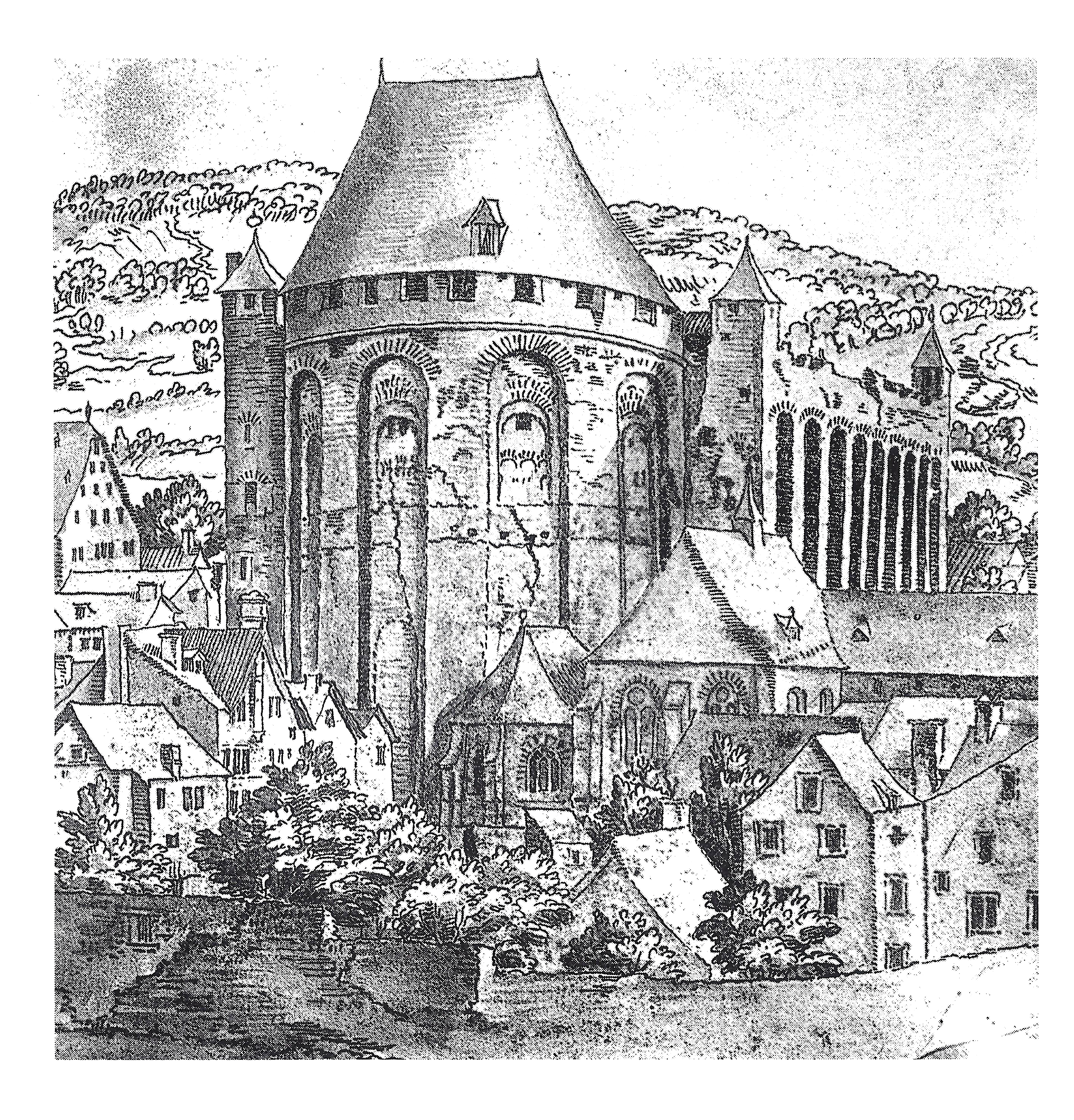 중세 시대에는 트리어 주교의 거주지로 사용되면서 앱스가 주거 공간으로 재설계되고 벽 상단에 첨탑이 추가되었다. 17세기에는 대주교 로타르 폰 메테르니히가 아울라 팔라티나를 자신의 궁전에 통합하면서 대대적인 재설계가 이루어졌다.
