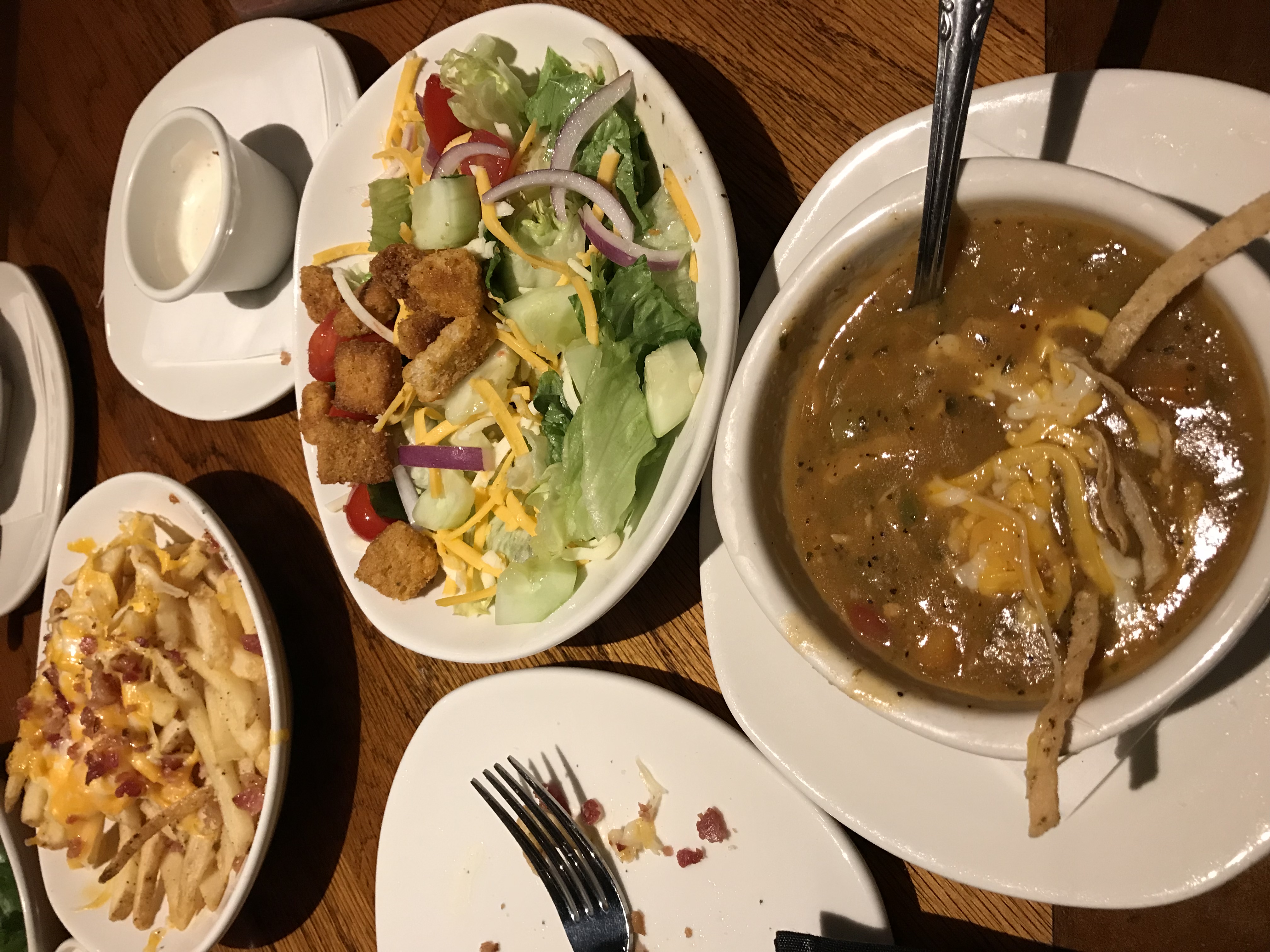 - -|]]|thumb|아웃백 메뉴 항목의 예시: 상단부터 호주 치즈 프라이, 하우스 샐러드, 치킨 토르티야 수프]]
