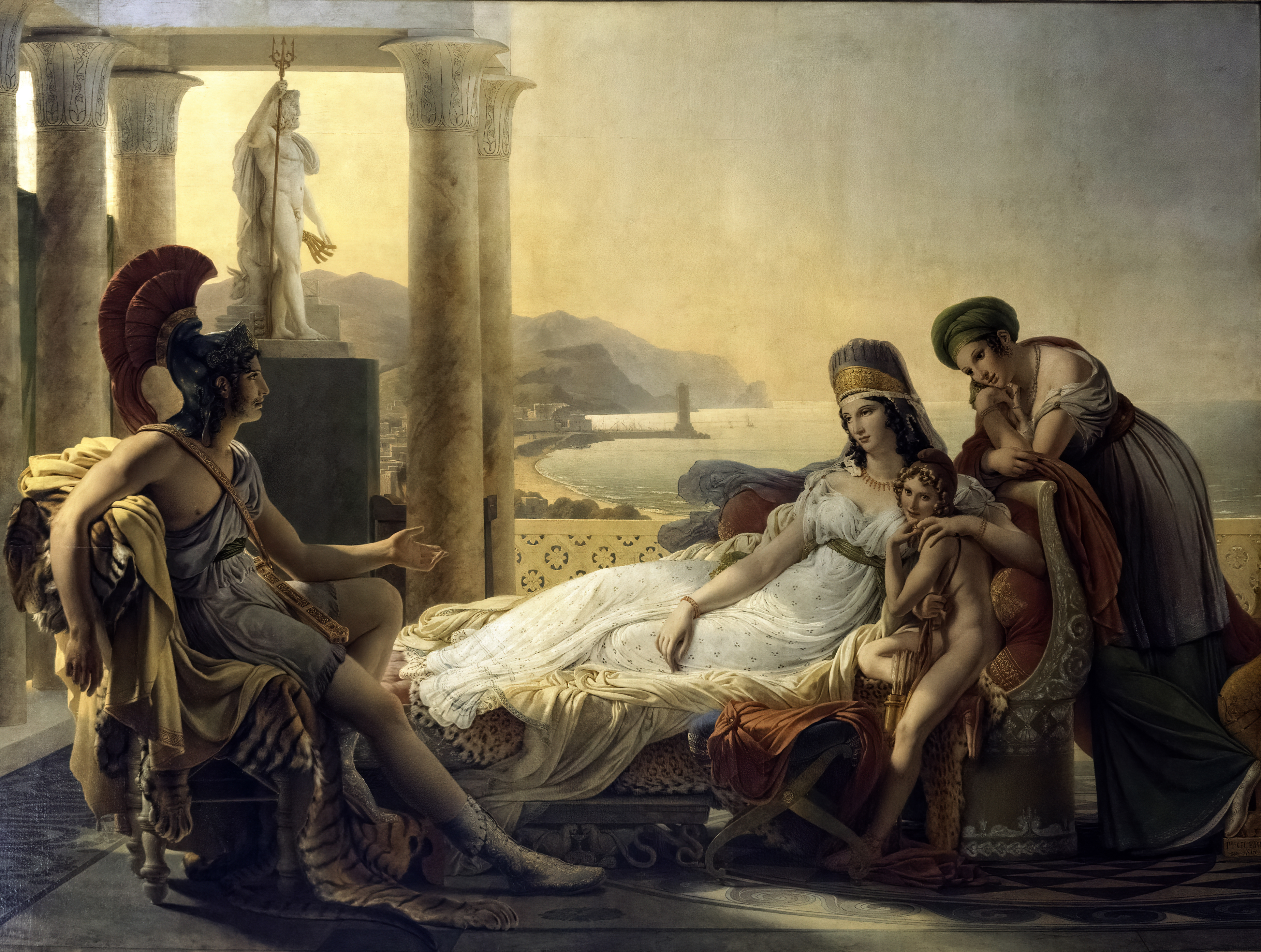 베르길리우스의 『아이네이스』에서 아이네이아스는 트로이 전쟁 이후 새로운 터전을 찾아 나선 영웅으로 그려진다. 트로이 함락 후, 아이네이아스는 아버지 안키세스와 아들 아스카니우스를 데리고 탈출하여, 신탁에 따라 조상의 땅인 이탈리아로 향한다.[15] 이 과정에서 시켈리아 섬을 우회하다 아버지 안키세스를 잃고, 카르타고에 표류하여 여왕 디도와 사랑에 빠지기도 한다. 그러나 신들의 뜻에 따라 이탈리아로 건너가 라티움에 정착하고, 그곳 왕 라티누스의 딸 라비니아와 결혼하여 라비니움을 건설한다.