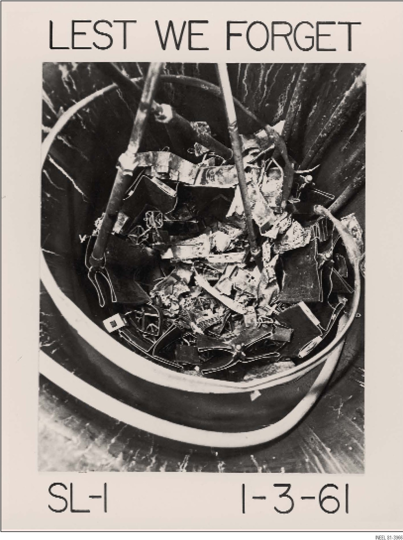1961년 1월 3일, NRTS는 미국 역사상 유일한 치명적인 원자력 원자로 사고의 현장이 되었다. 이 사건은 미국 육군의 실험 시설인 고정 저출력 원자로 1호(SL-1)에서 발생했다. 부실한 설계 및 유지 관리 절차로 인해 하나의 제어봉이 수동으로 너무 멀리 원자로에서 뽑혀 원자로가 즉발 임계 상태가 되어 파괴적인 출력 급증을 일으켰다. 3명의 훈련된 군인이 제어봉을 모터 조립체에 다시 연결하는 과정에서 실수로 원자로실 안에서 작업 중이었다.[14] 중앙 제어봉이 거의 완전히 펴진 상태에서 3MW로 평가된 원자력 원자로는 20GW로 빠르게 출력을 증가시켰다. 이것은 코어 내부의 물을 빠르게 끓게 했다.[15][16] 증기가 팽창하면서 압력파가 원자로 용기 상단을 강하게 때렸고, 그 위에 두 명의 남자가 서 있었다. 폭발은 너무 심해서 원자로 용기가 9피트 공중으로 솟아올라 천장에 부딪힌 후 원래 위치로 다시 내려앉았다.[17] 한 남자는 차폐 플러그에 꿰뚫려 천장에 꽂혔고 그 자리에서 즉사했다.[14] 다른 남자들은 몇 시간 안에 부상으로 사망했다. 세 남자는 납 관에 묻혔고, 그 부지 전체가 매장되었다.[17][18][19] 코어 용융은 해당 지역에 피해를 주지 않았지만, 일부 방사성 핵분열 생성물이 대기 중으로 방출되었다.