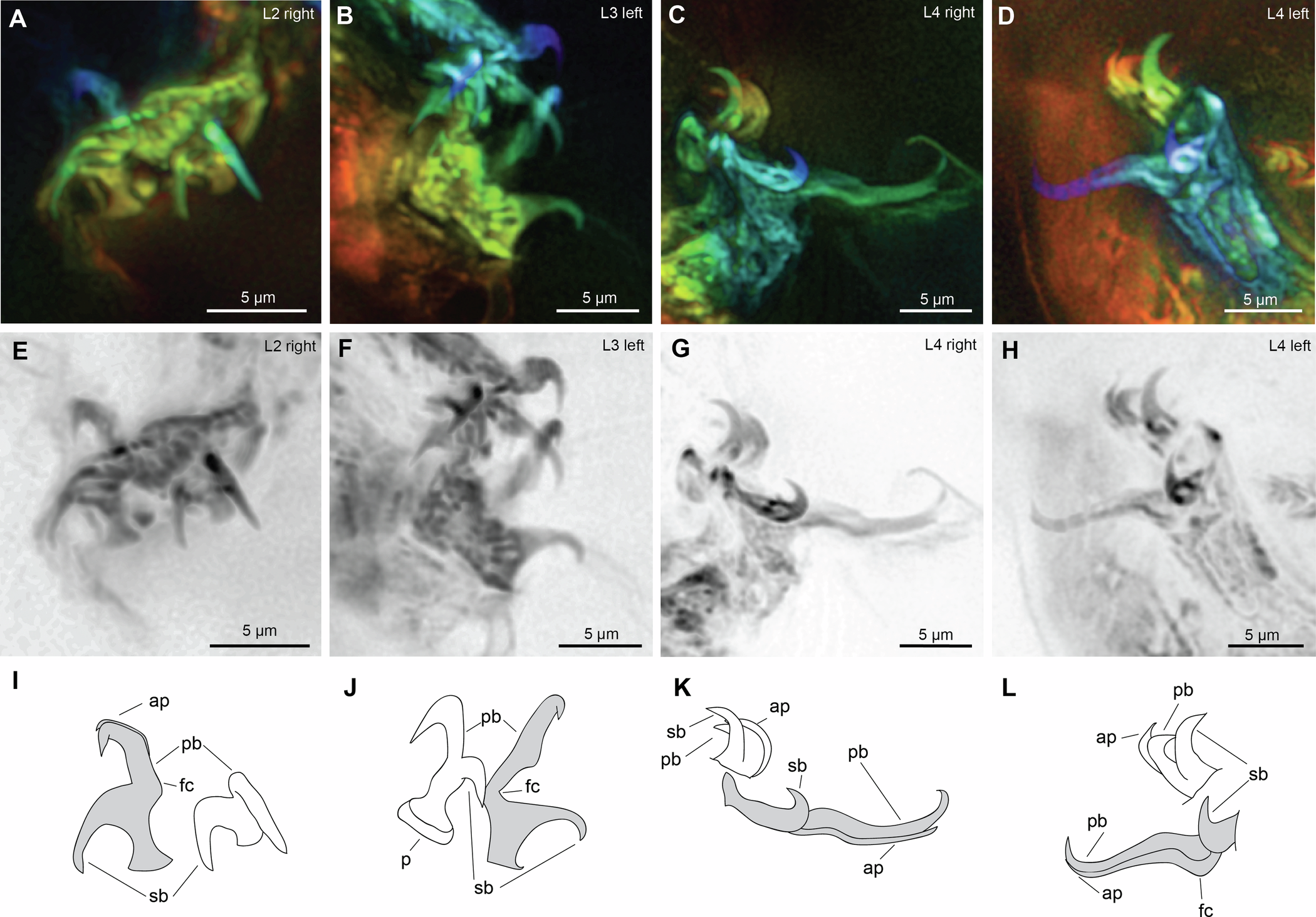 쪼그라들은 상태에서의 몸길이는 약 0.1mm 정도이다. 큐티클 위에 뚜렷한 융기는 없다. 안점은 보이지 않는다. 타원형 장기가 머리 옆에서 희미하게 보이고, 머리 앞의 입구멍은 매끄럽다.