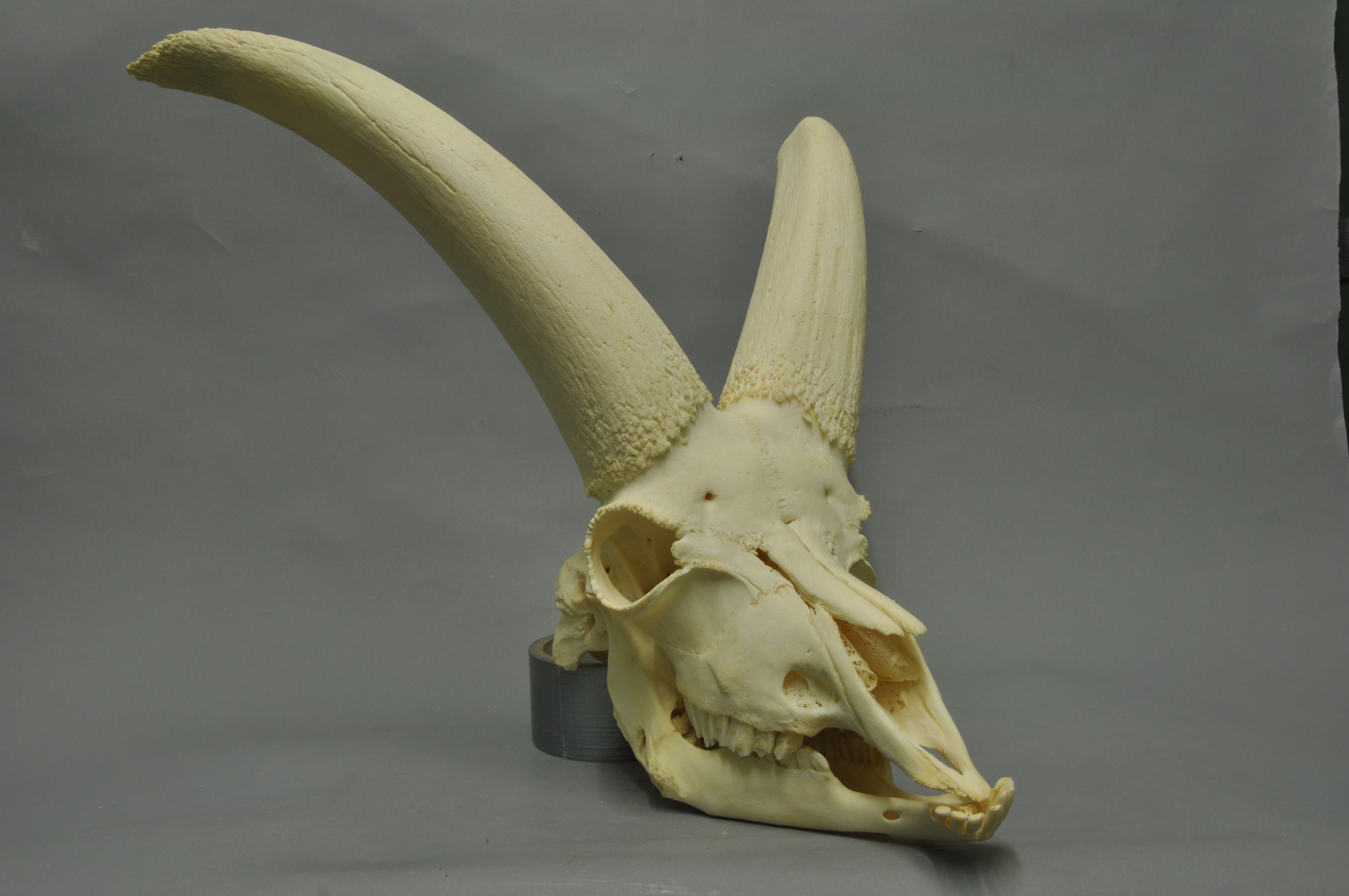 다 자란 수컷과 암컷은 번식기인 12월과 1월에 함께 모였다가, 4월과 5월에 다시 헤어진다.[7] 수컷들 사이에는 몸 크기, 나이, 뿔 길이를 기준으로 한 지배 계층이 존재한다.[26] 이 계층은 번식기가 아닌 시기에 형성되어, 수컷들이 번식기에 싸움보다는 짝짓기에 더 집중할 수 있도록 돕는다. 수컷은 뿔을 이용해 싸우는데, 상대방의 옆구리를 들이받거나 머리를 맞대고 힘을 겨루며, 때로는 뒷발로 일어서서 위에서 아래로 뿔을 내리찍기도 한다.[27]