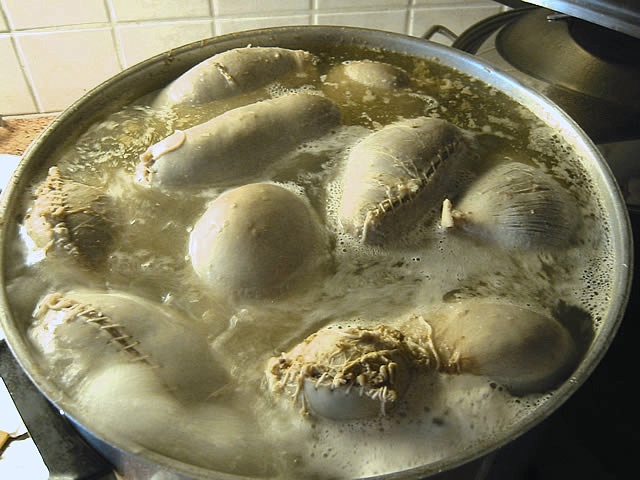 담수어로는 송어, 연어, 잉어, 메기 등도 먹지만, 이쪽은 통째로 튀기는 등 신중하게 가열한다.[1]