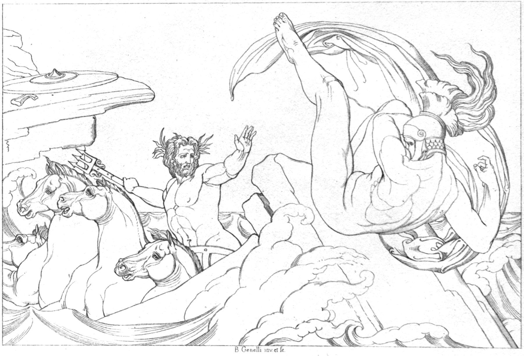 트로이에서 돌아오는 길에 아이아스가 탄 함선은 아테나가 보낸 폭풍우를 만나 난파되었지만, 아이아스는 겨우 바위에 기어올라 살아남았다. 그러나 포세이돈이 그의 오만함에 분노하여 삼지창으로 아이아스가 붙잡고 있던 바위를 부수어, 결국 바다에 빠져 익사하였다.[17] 테티스는 미코노스에 밀려온 그의 시신을 수습하여 장사지냈다.[18]